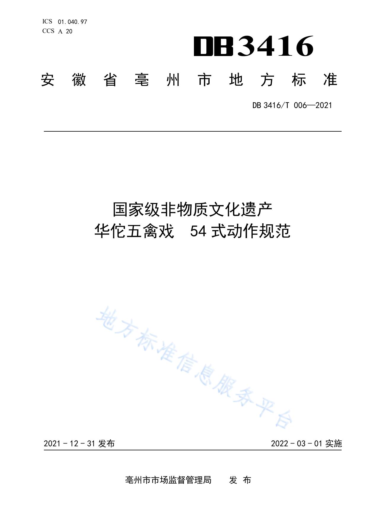国家级非物质文化遗产 华佗五禽戏 标准体系
