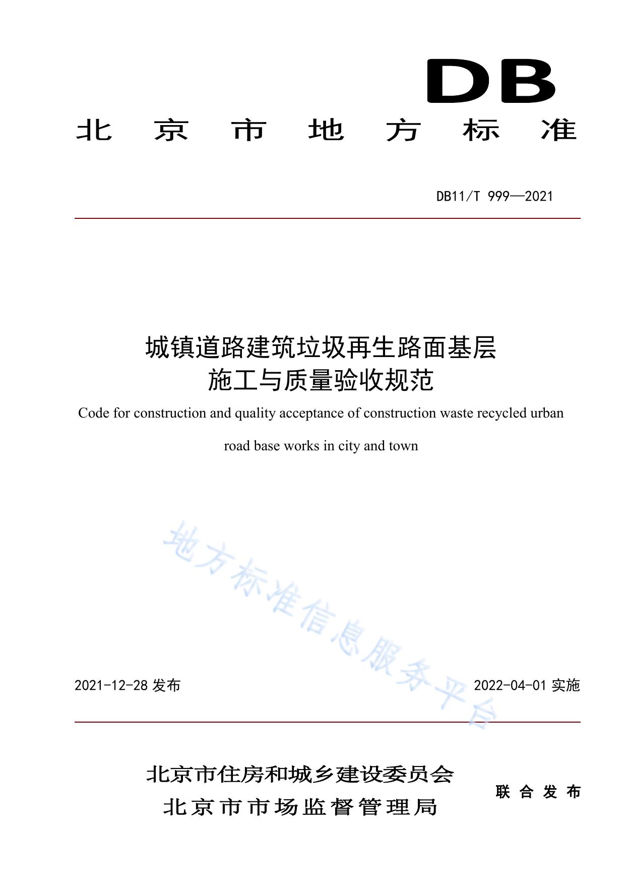 城镇道路建筑垃圾再生路面基层施工与质量验收规范