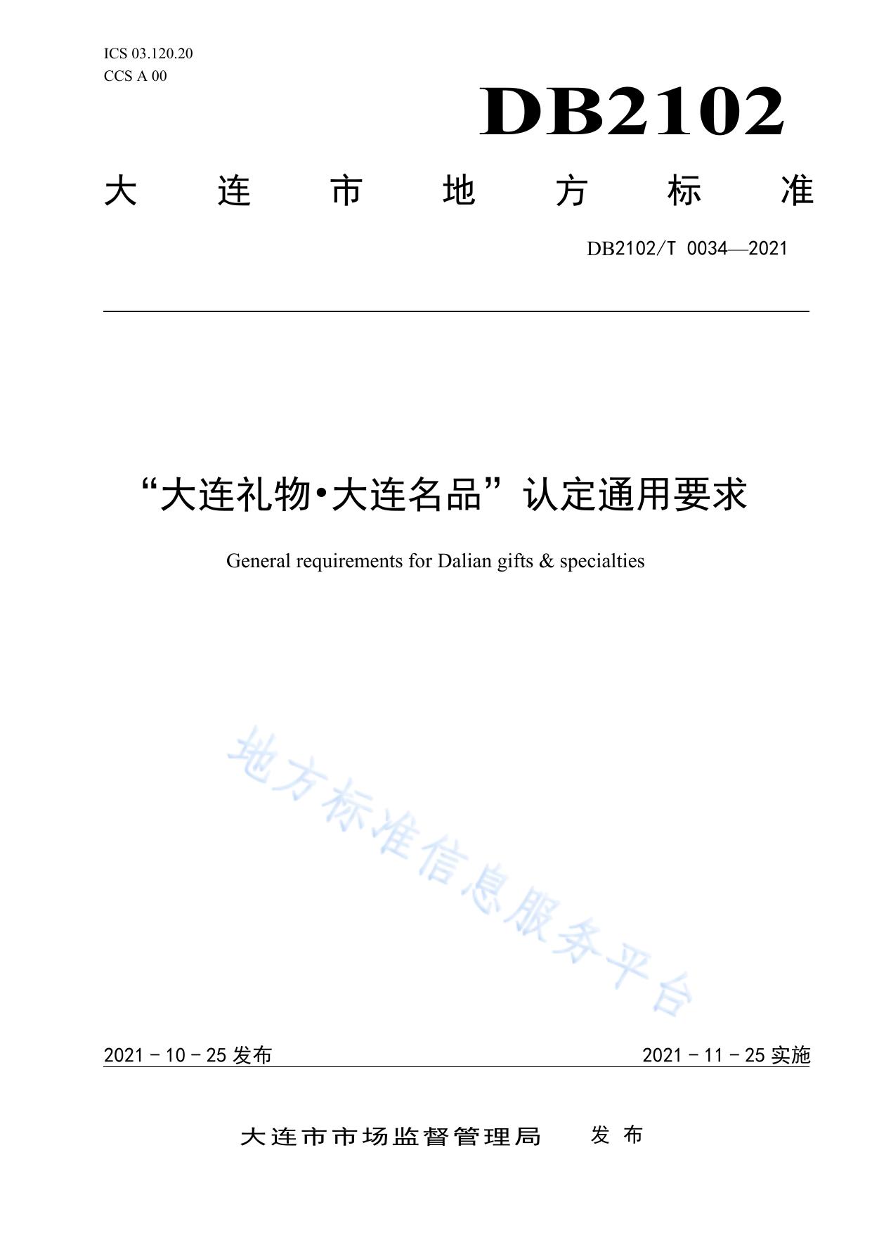 “大连礼物·大连名品”认定通用要求