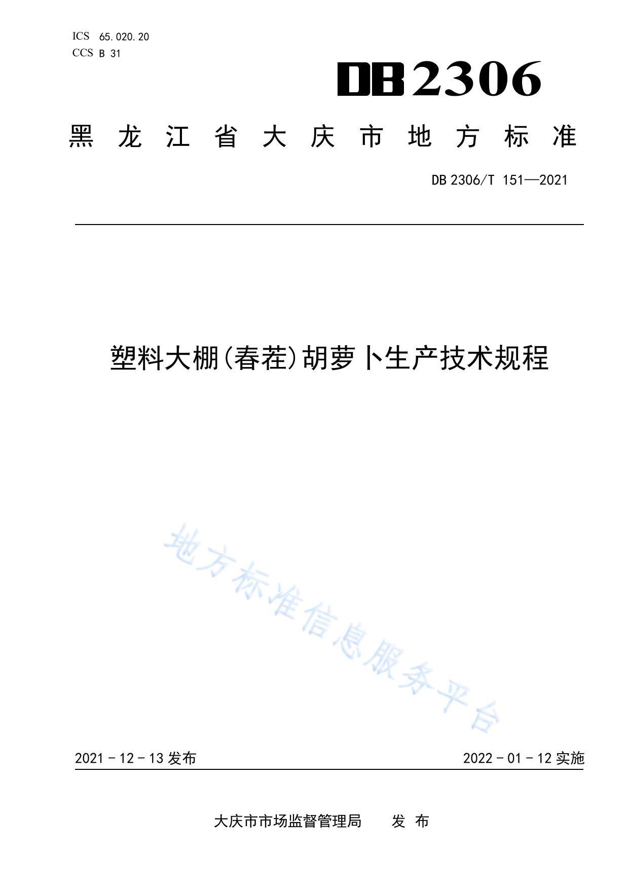 塑料大棚(春茬)胡萝卜生产技术规程