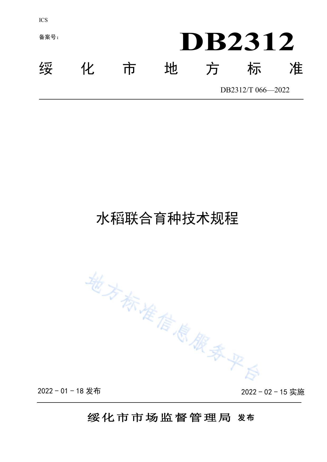 水稻联合育种技术规程