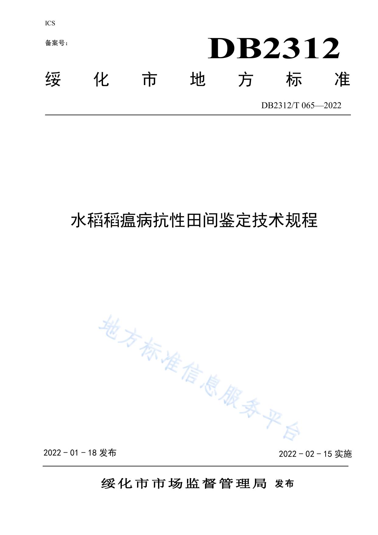 水稻抗稻瘟病田间鉴定技术规程