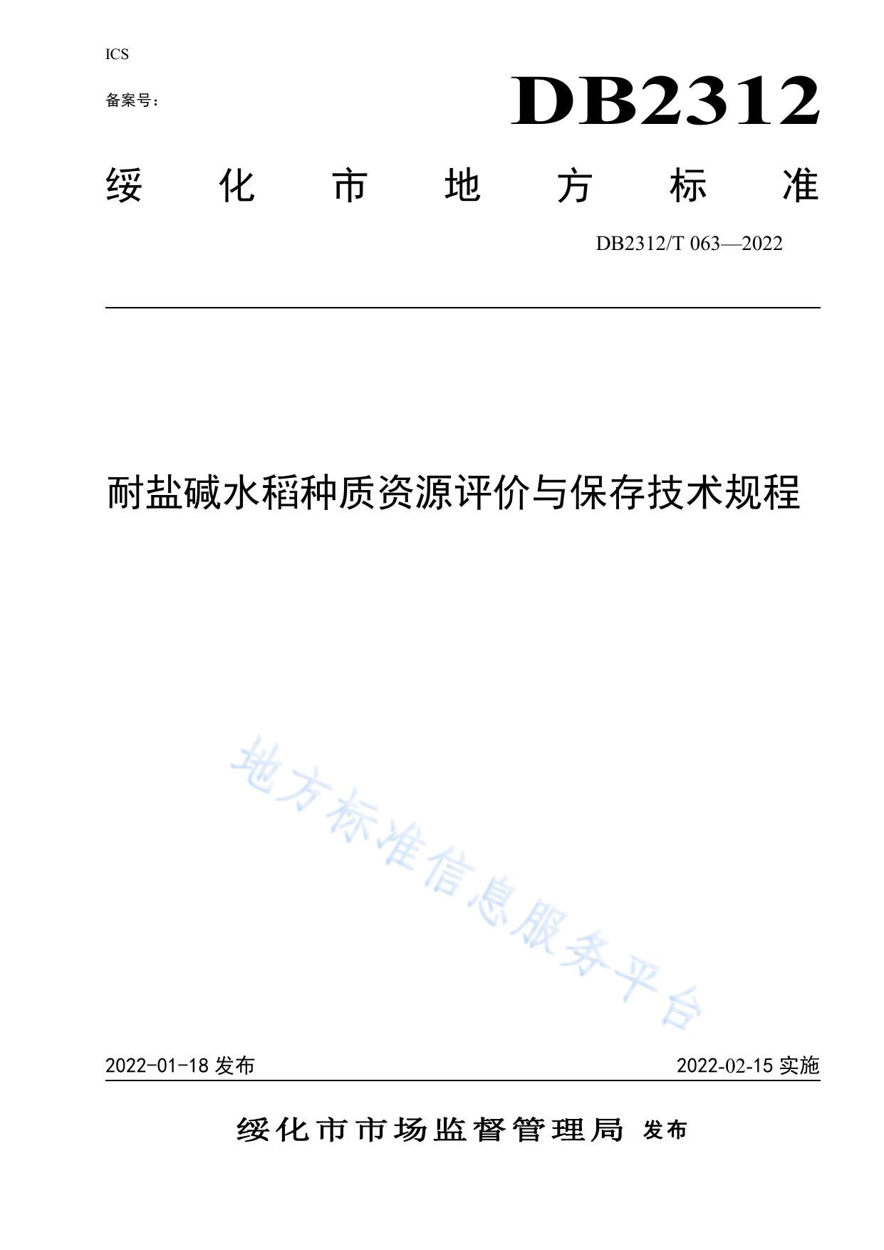 耐盐碱水稻种质资源评价与保存技术规程