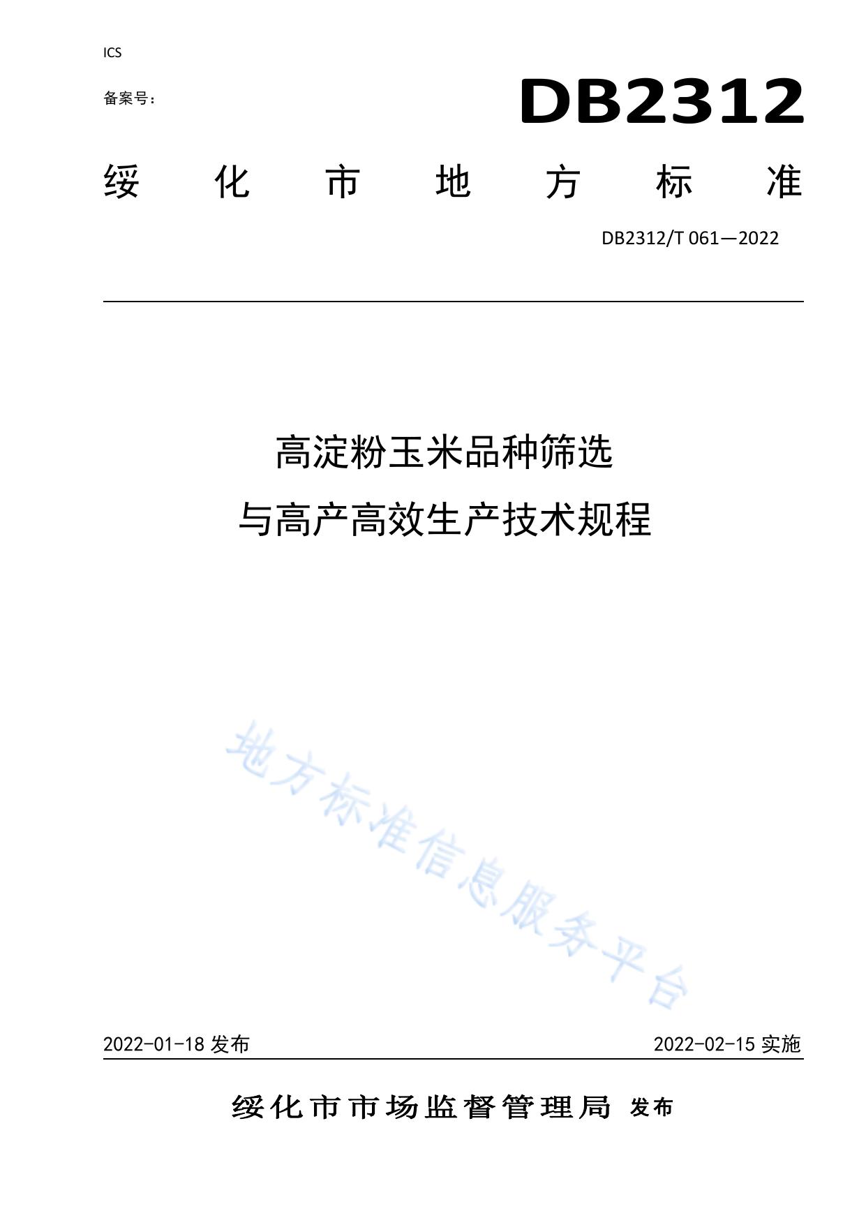高淀粉玉米品种筛选与高产高效生产技术规程