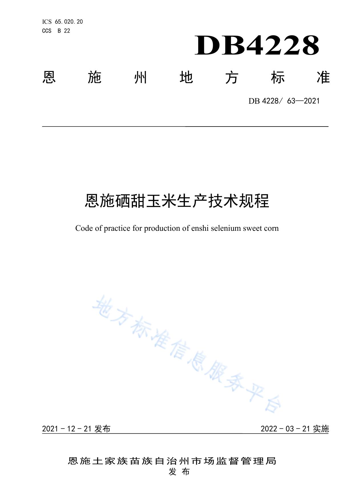 恩施硒甜玉米生产技术规程