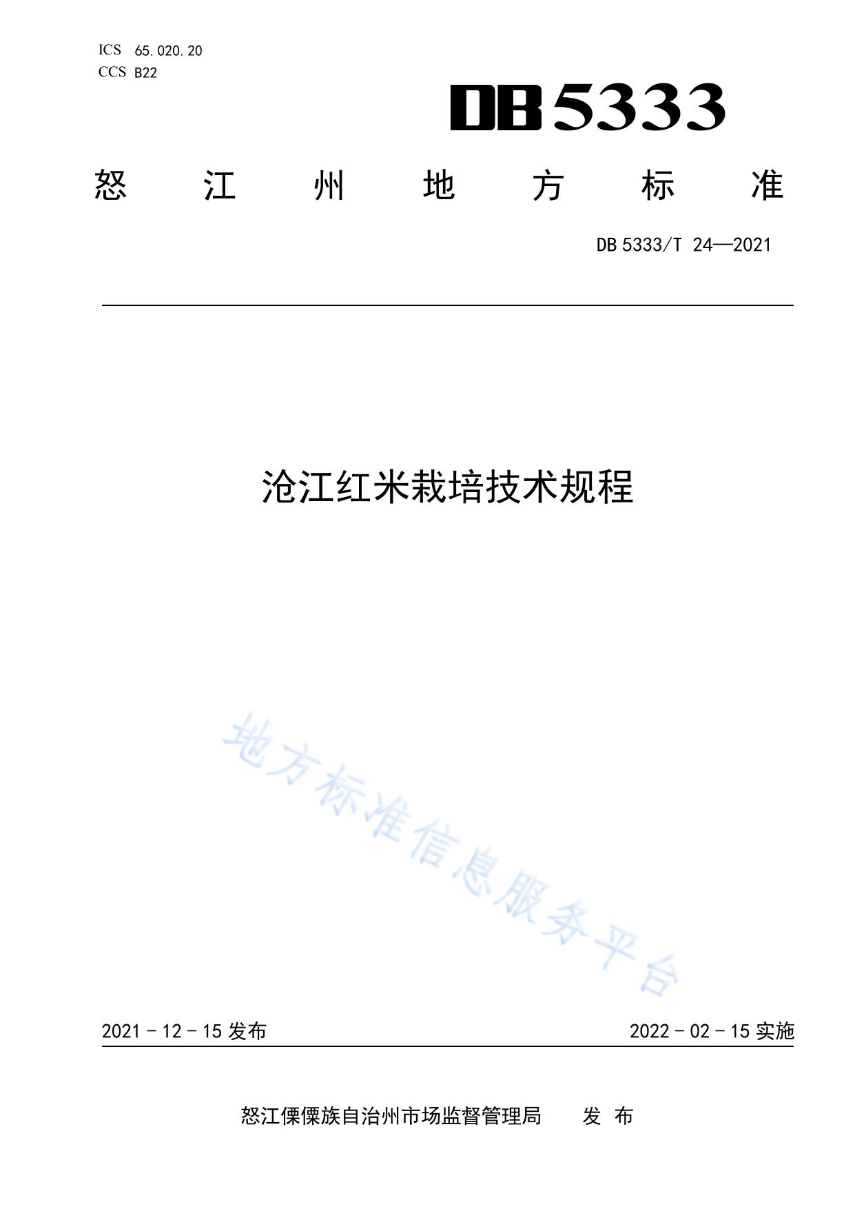 《沧江红米栽培技术规程》