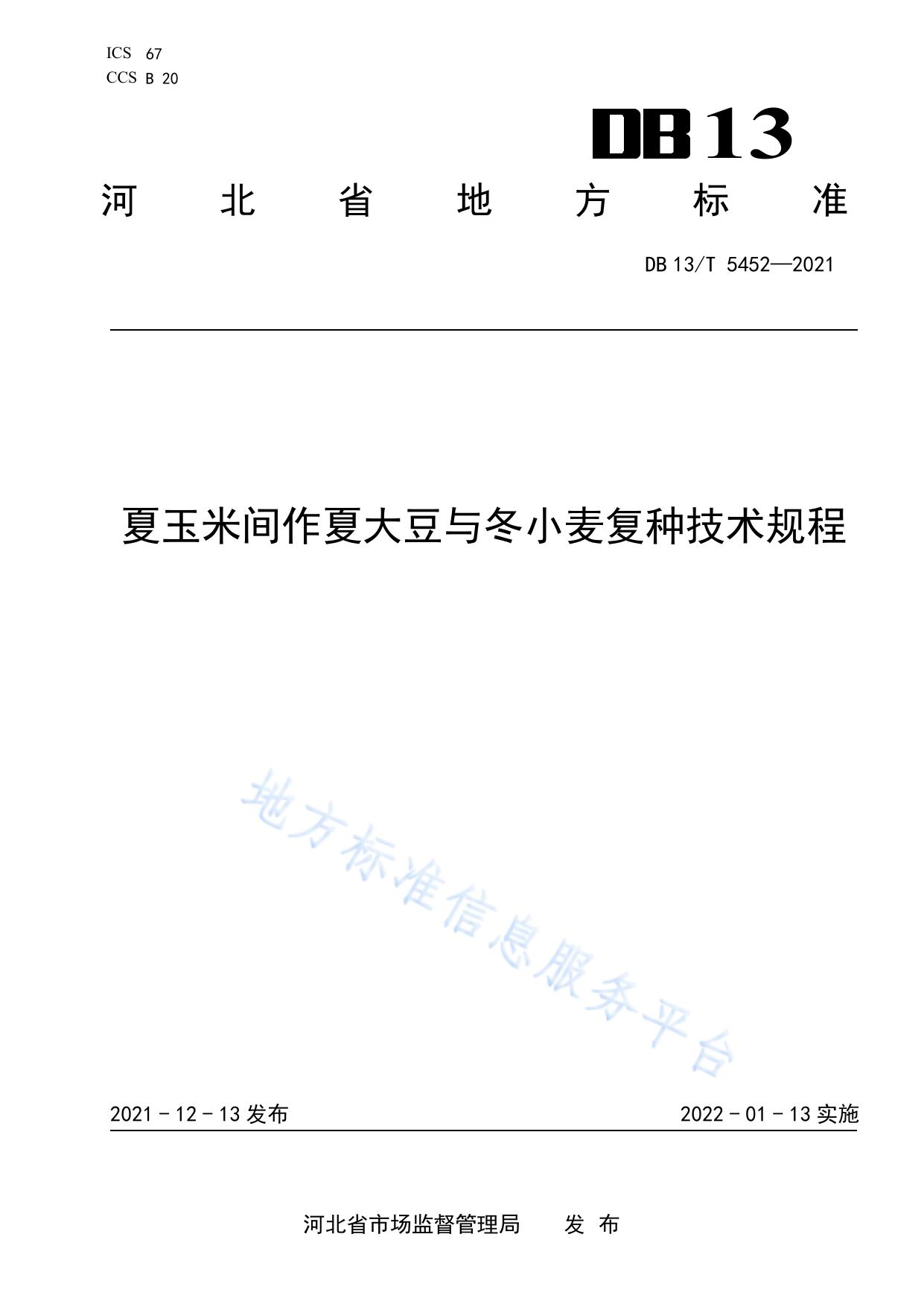 夏玉米间作夏大豆与冬小麦复种技术规程