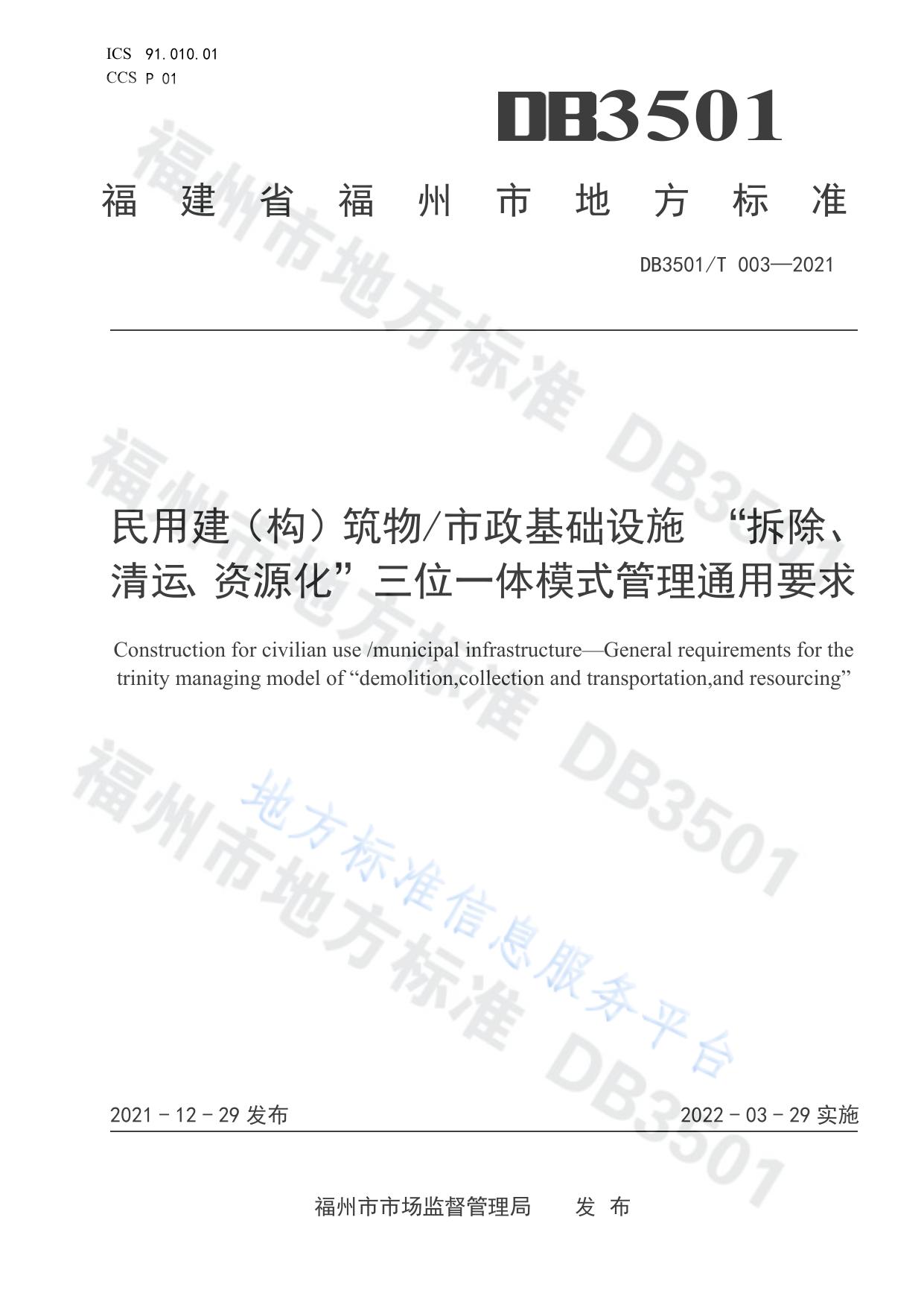 民用建(构)筑物市政基础设施 “拆除、清运、资源化”三位一体模式管理通用要求