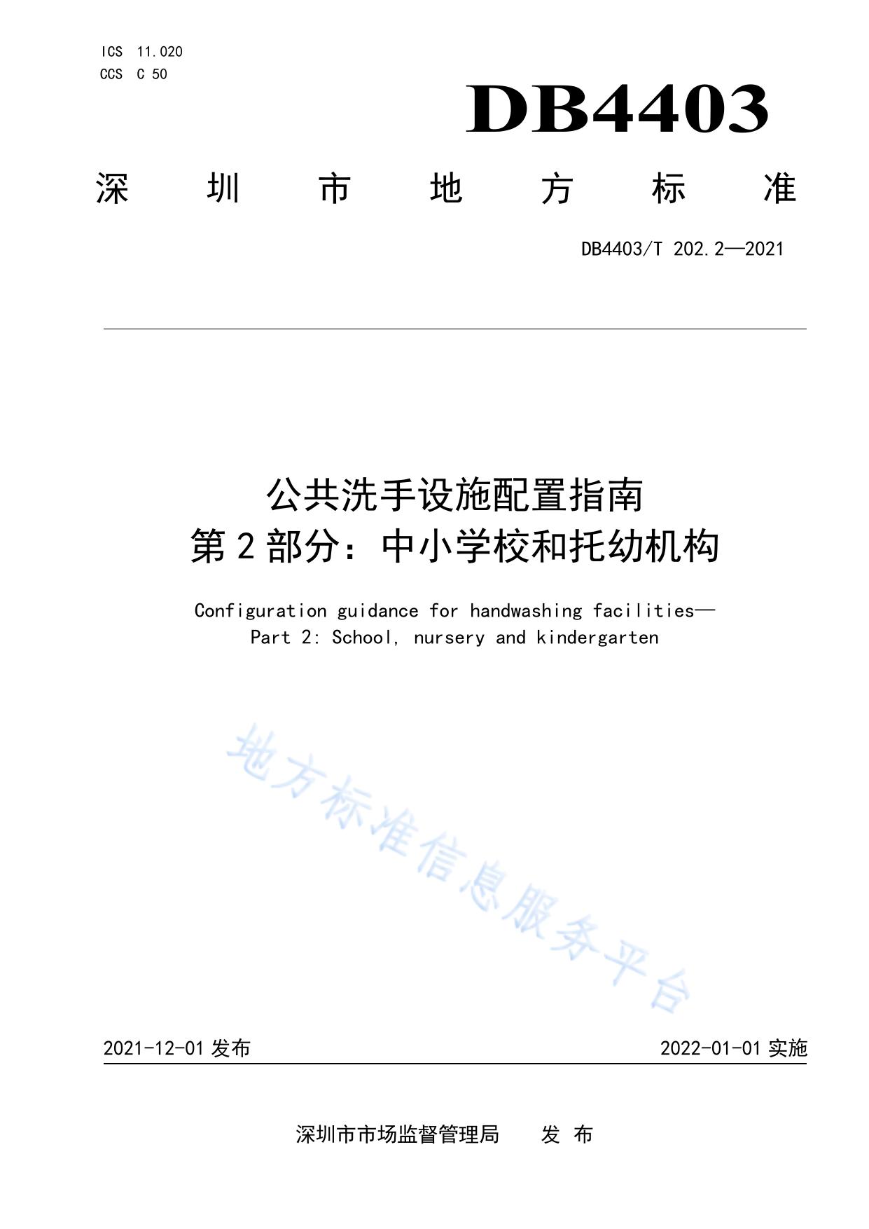 公共洗手设施配置指南 第2部分:中小学校和托幼机构