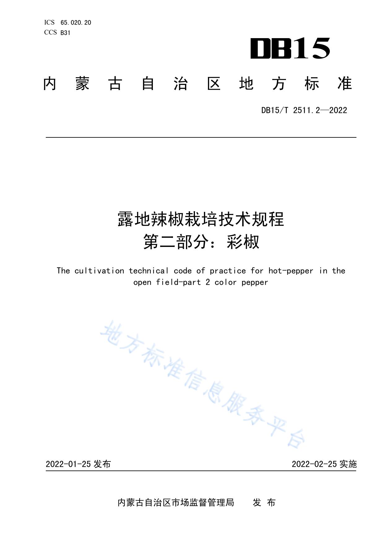 露地辣椒栽培技术规程 第2部分:彩椒
