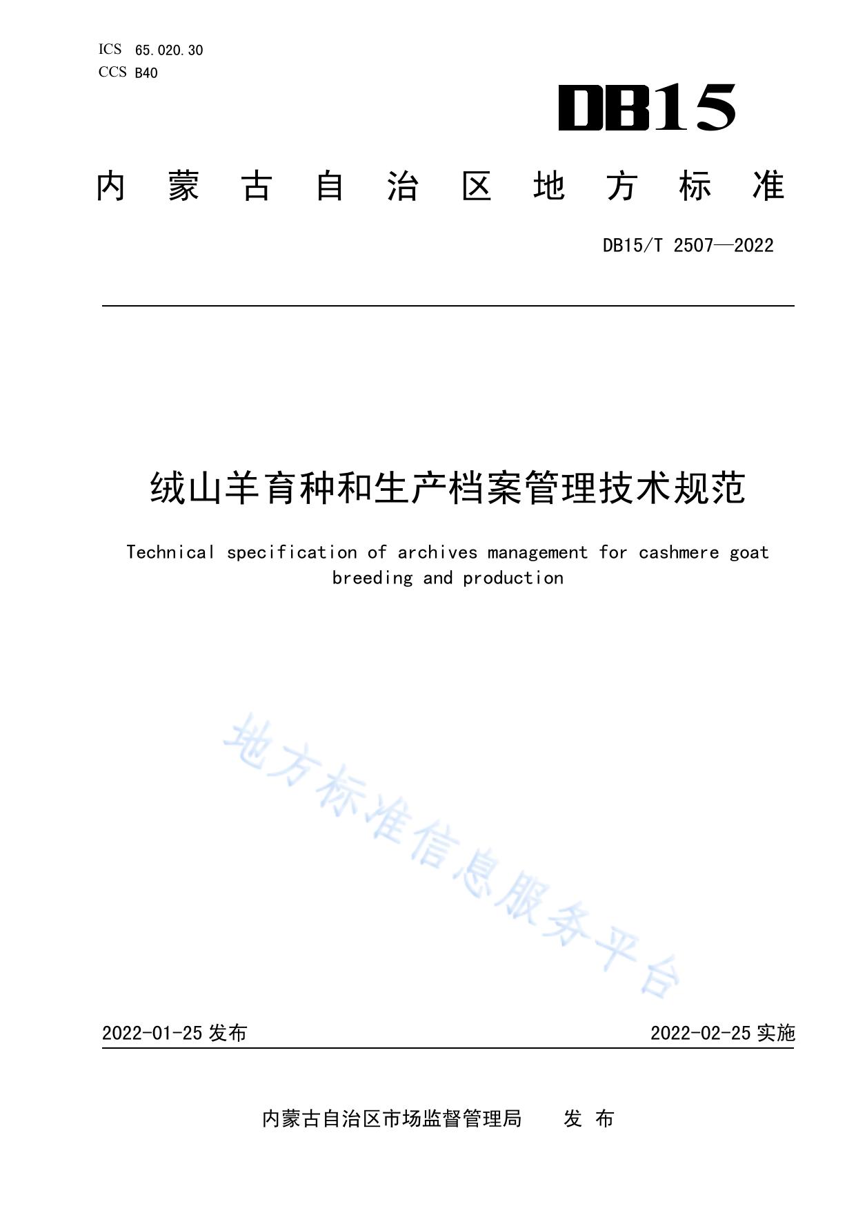 绒山羊育种和生产档案管理技术规范