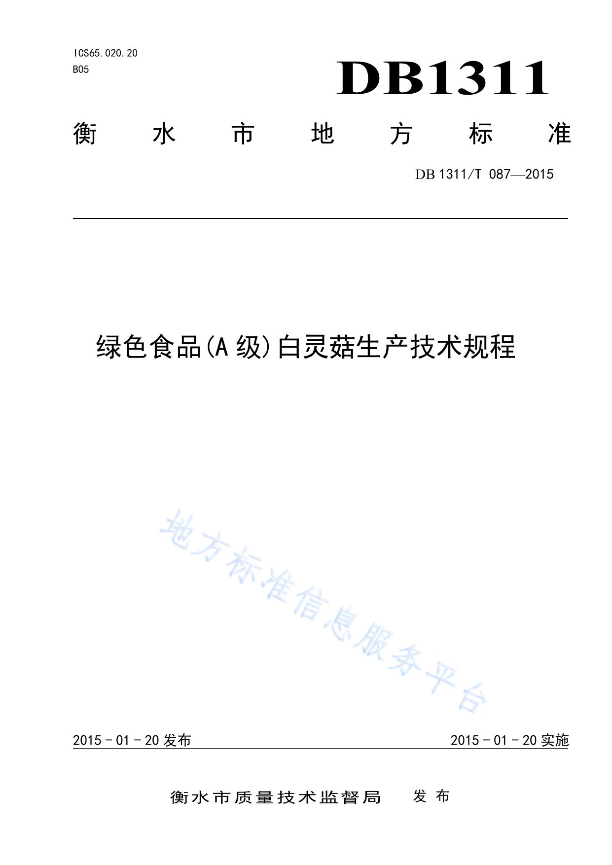绿色食品(A级)白灵菇生产技术规程