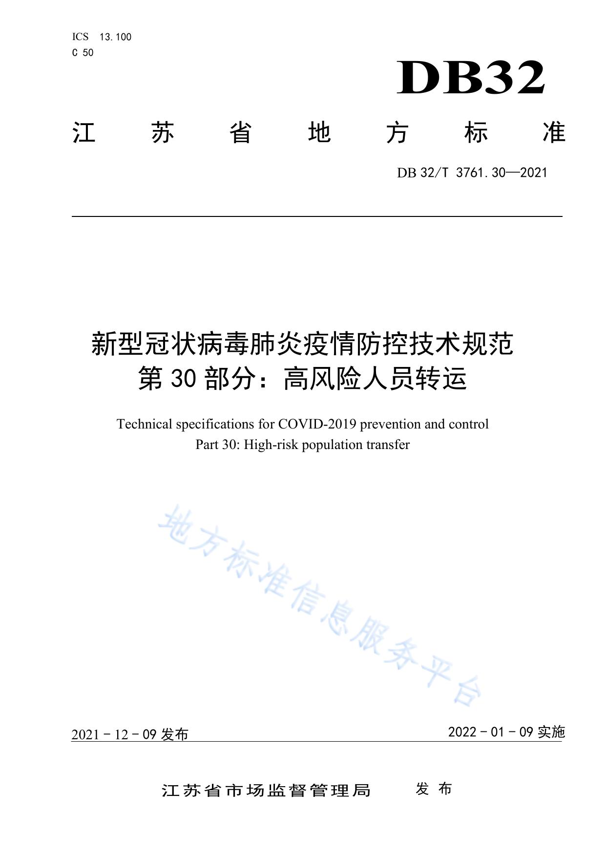 新型冠状病毒肺炎疫情防控技术规范 第30部分:高风险人员转运