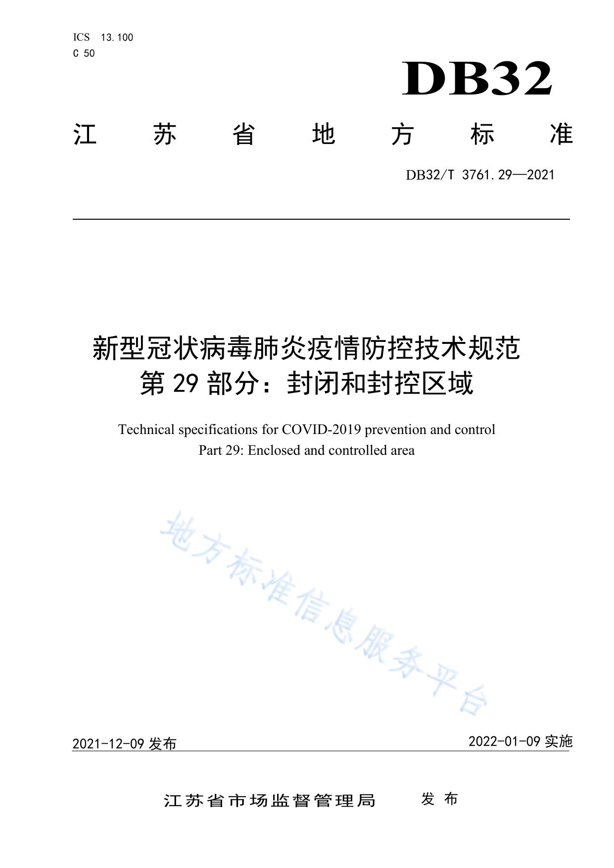 新型冠状病毒肺炎疫情防控技术规范 第29部分:封闭和封控区域