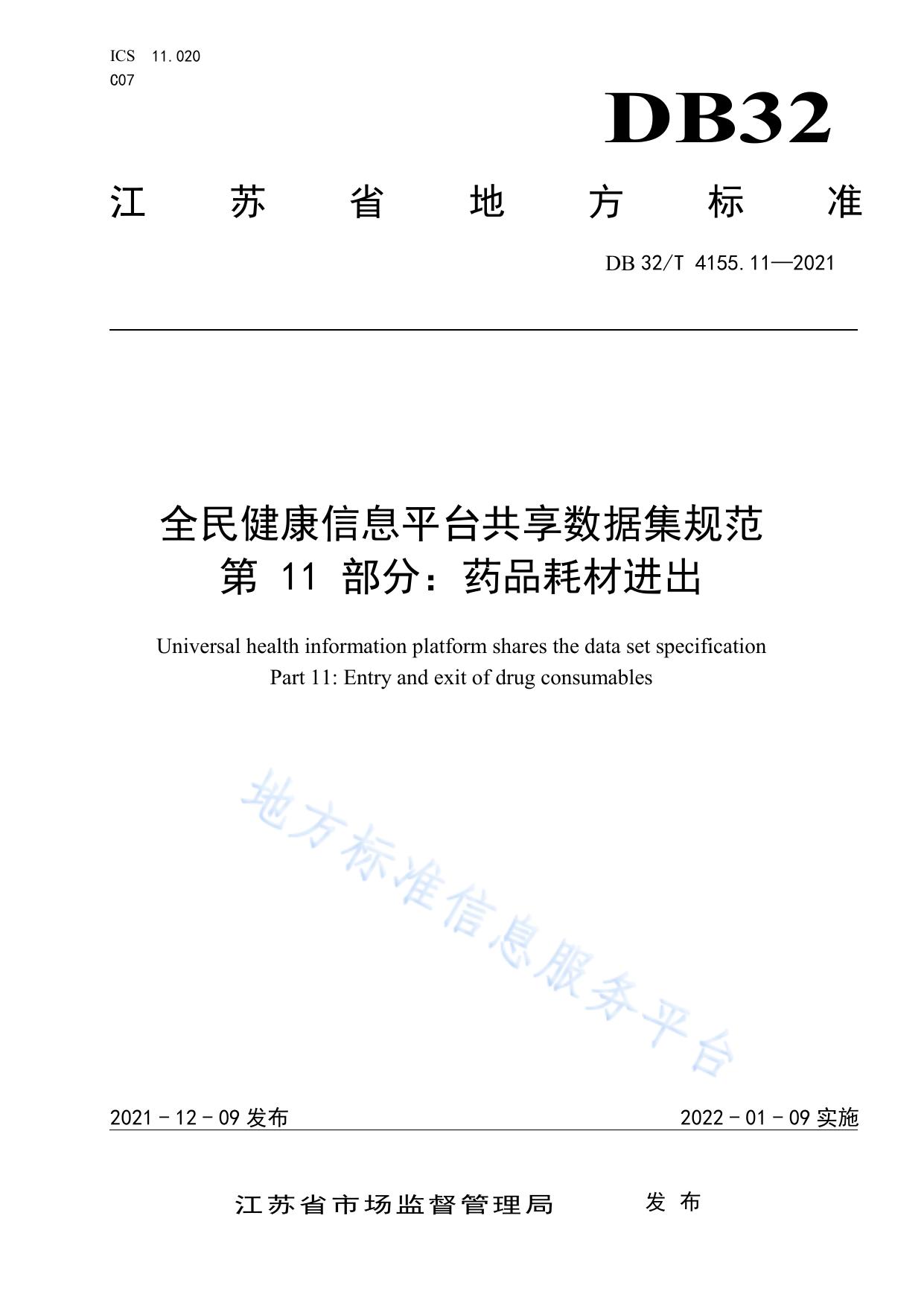 全民健康信息平台共享数据集规范 第11部分:药品耗材进出