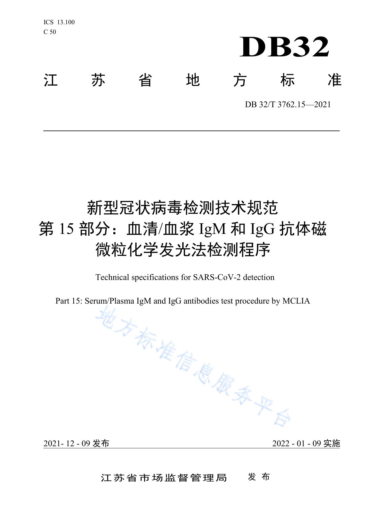 新型冠状病毒检测技术规范 第15部分:血清血浆IgM和IgG抗体磁微粒化学发光法检测程序