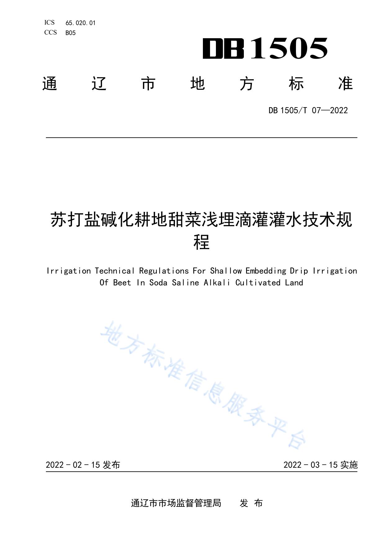 苏打盐碱化耕地甜菜浅埋滴灌灌水技术规程