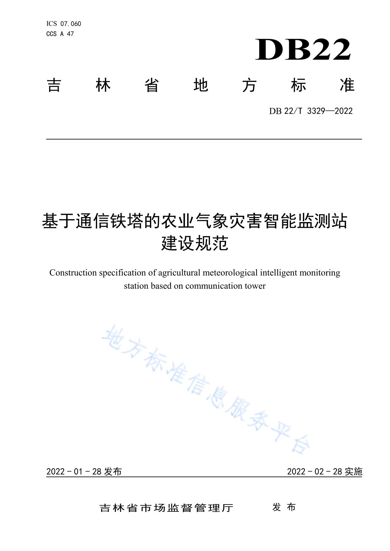 基于通信铁塔的农业气象灾害智能监测站建设规范