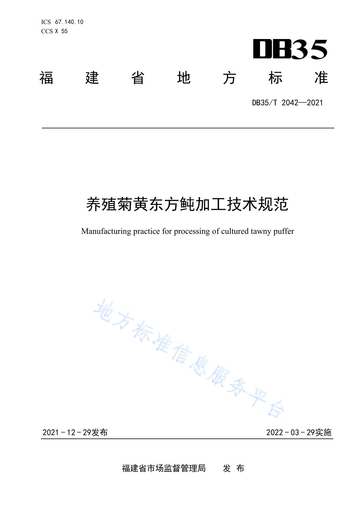 养殖菊黄东方鲀加工技术规范
