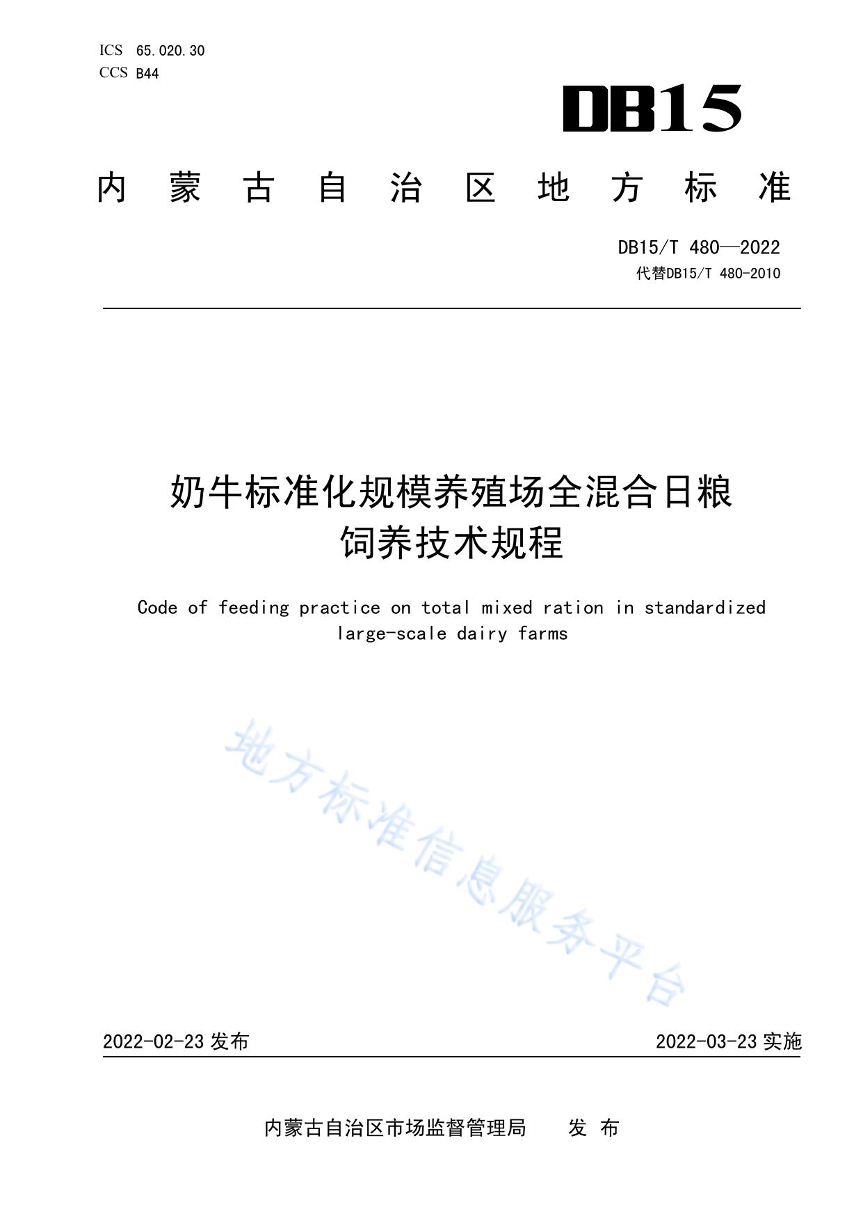 奶牛标准化规模养殖场全混合日粮饲养技术规程