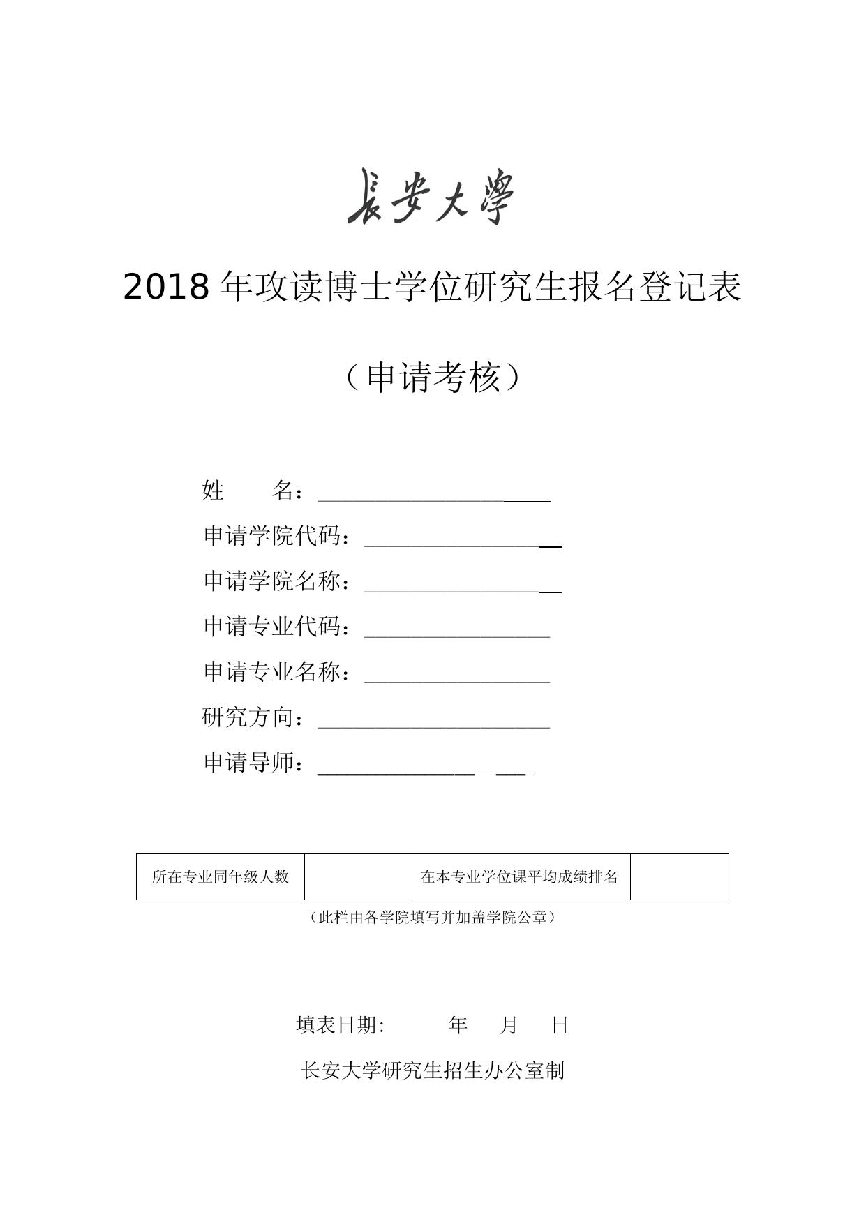 附件3-长安大学2018年申请考核攻读博士学位研究生报名登记表.docx