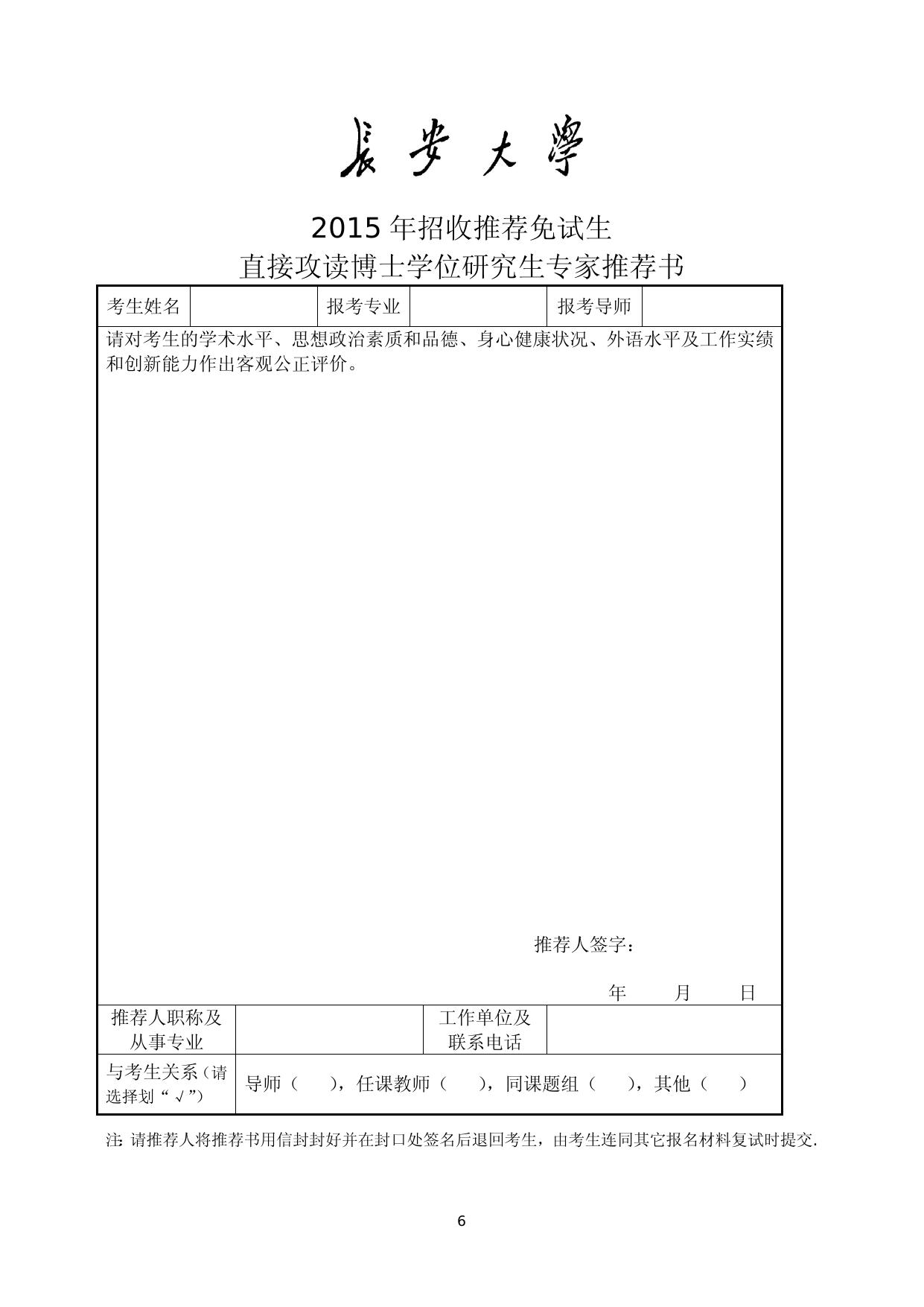 长安大学2015年招收优秀应届本科毕业生直接攻读博士学位研究生专家推荐书.doc