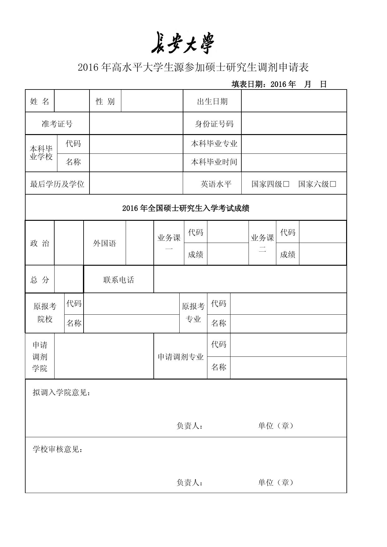 2016年高水平大学生源参加硕士研究生调剂申请表.doc