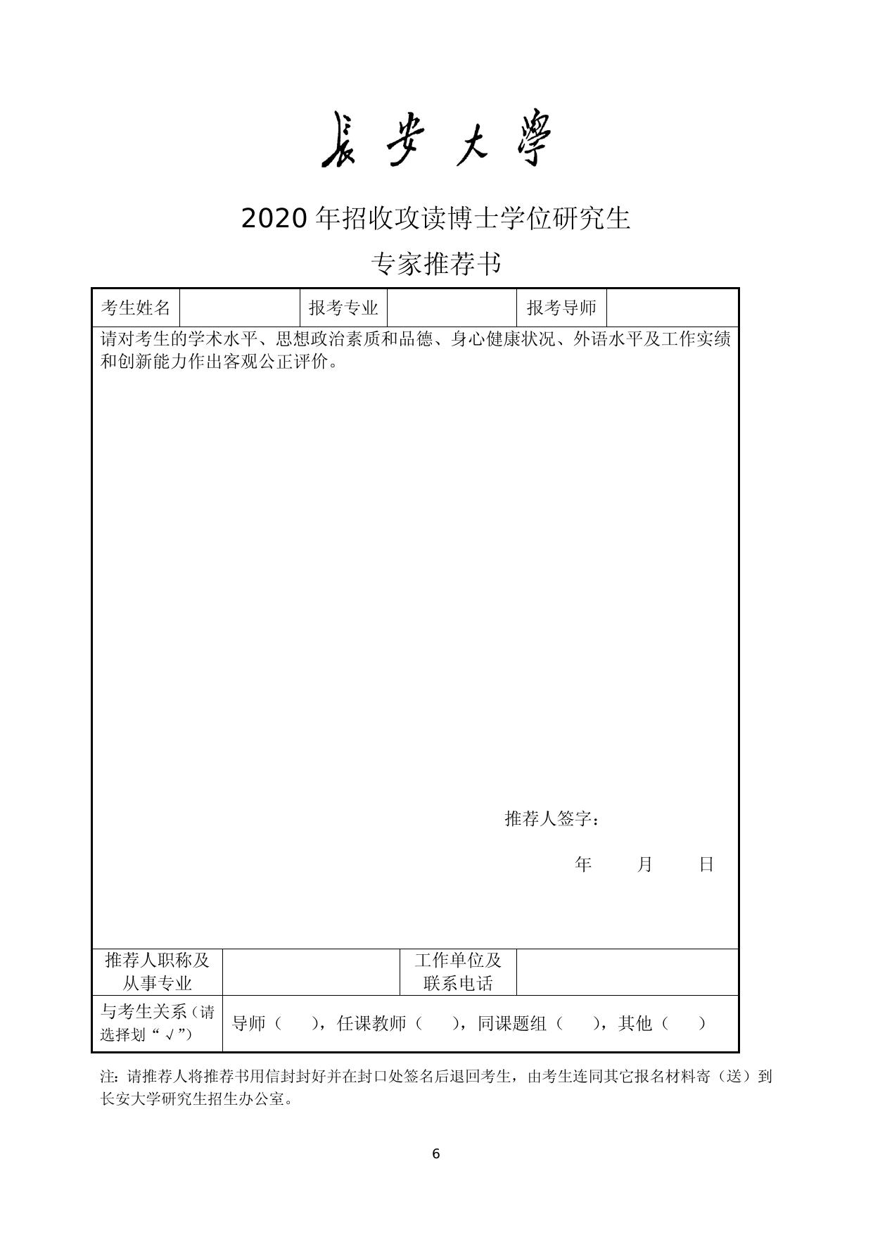 附件4-长安大学2020年招收攻读博士学位研究生专家推荐书.doc