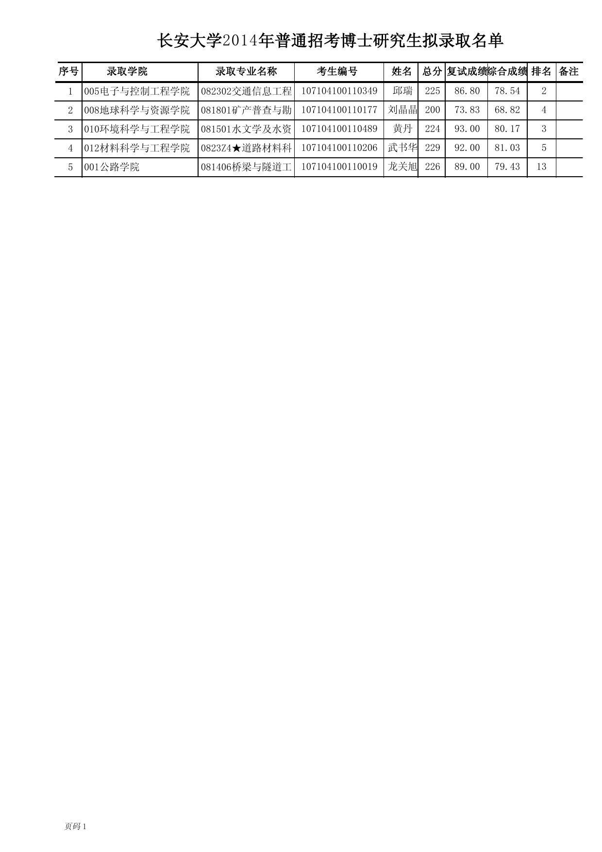 长安大学2014年普通招考博士学位研究生拟录取名单(补充).pdf
