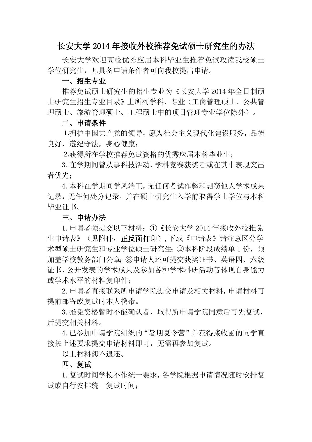 长安大学2014年接收外校推荐免试硕士研究生的办法.doc