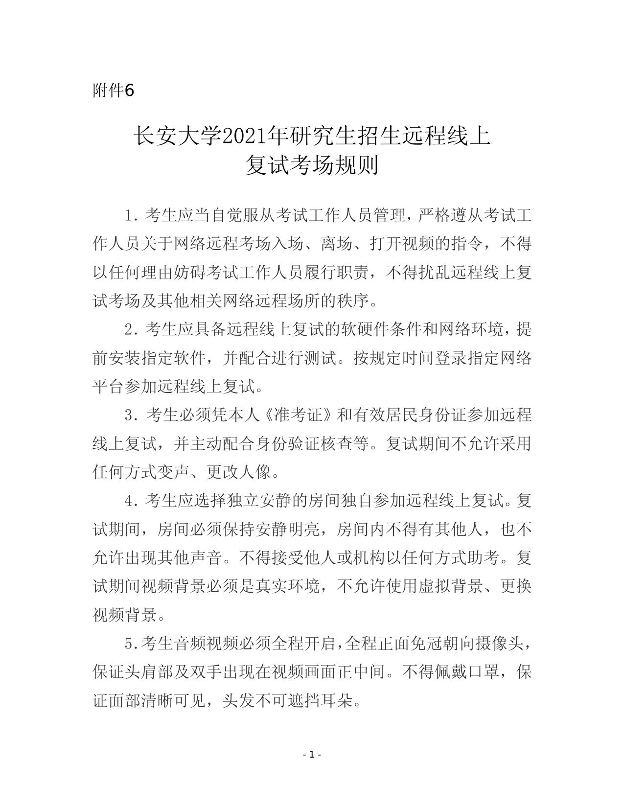 附件6-长安大学2021年硕士研究生远程线上复试考场规则.docx
