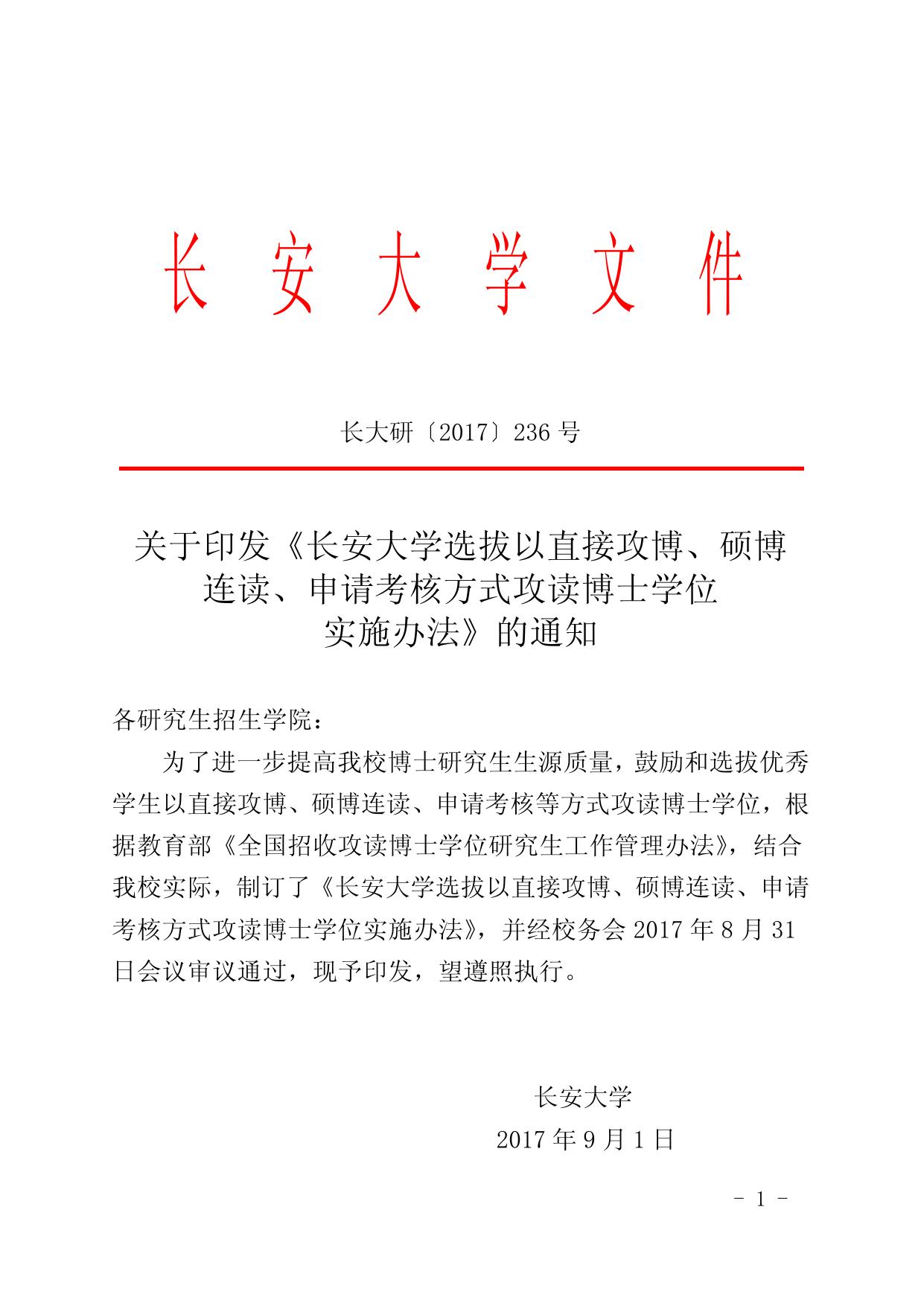 附件1-关于印发《长安大学选拔以直接攻博、硕博连读、申请审核方式攻读博士学位实施办法》的通知.docx
