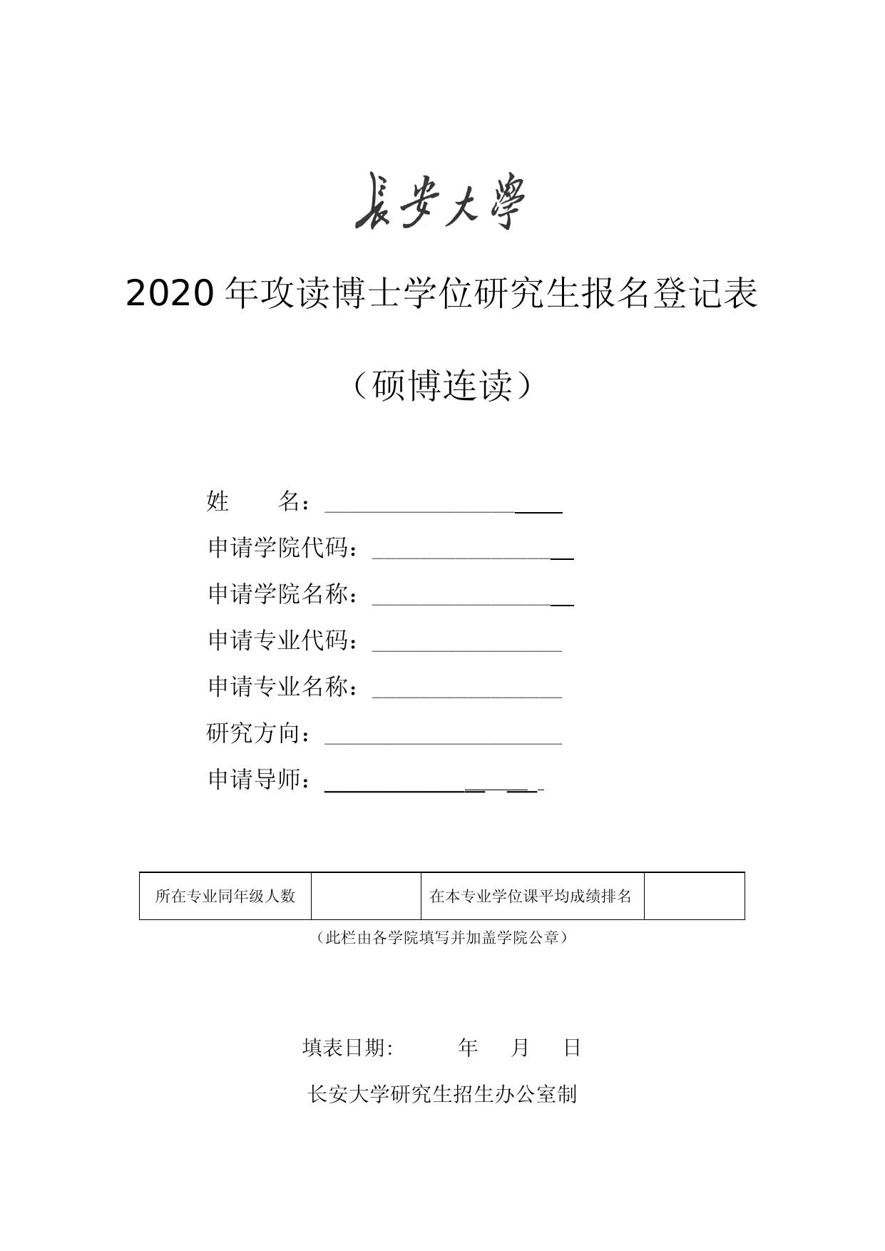 附件2-长安大学2020年硕博连读攻读博士学位研究生报名登记表.docx