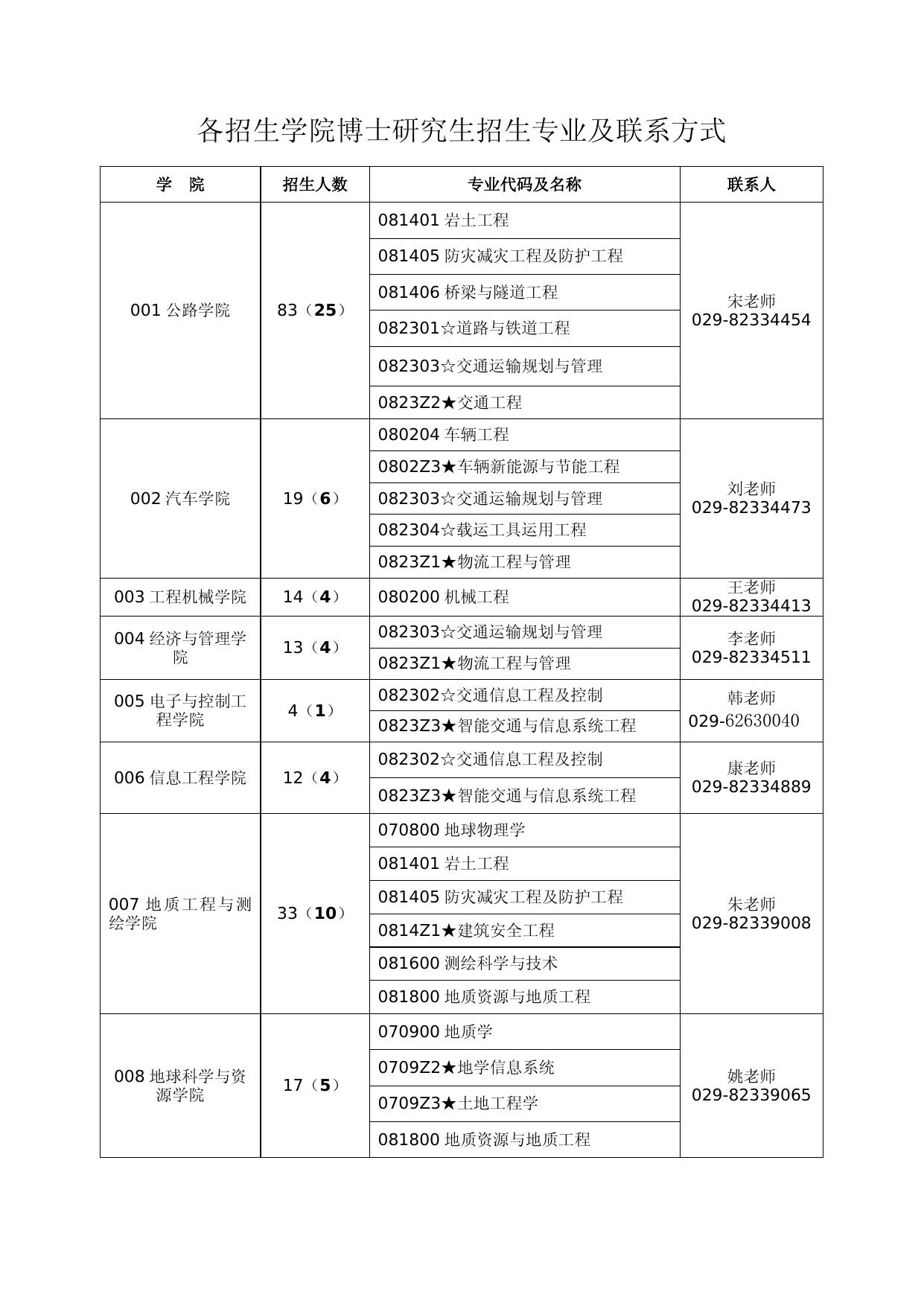 长安大学2020年博士研究生招生专业及联系方式.docx