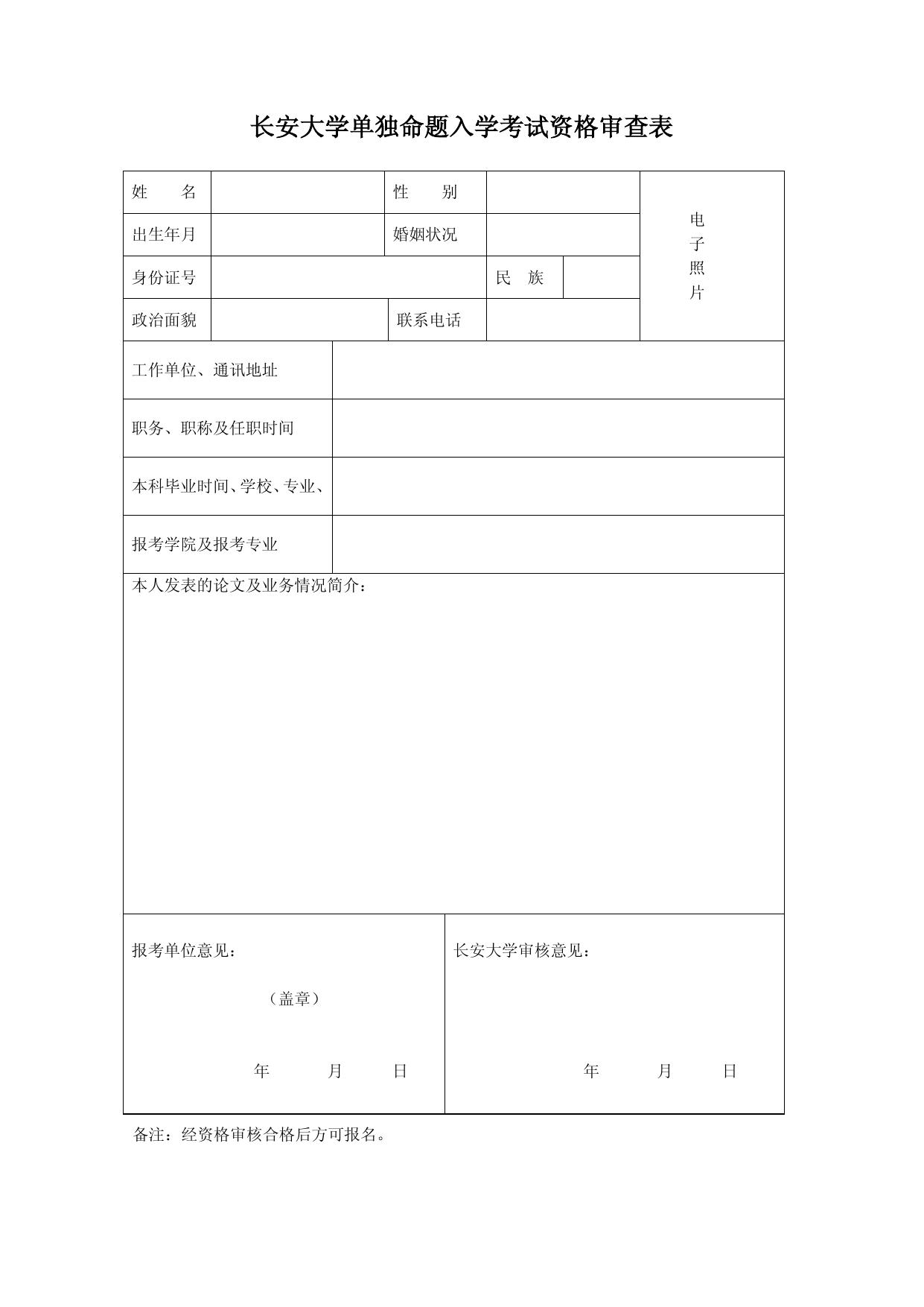 2020年长安大学招收攻读博士学位研究生报名登记表.doc