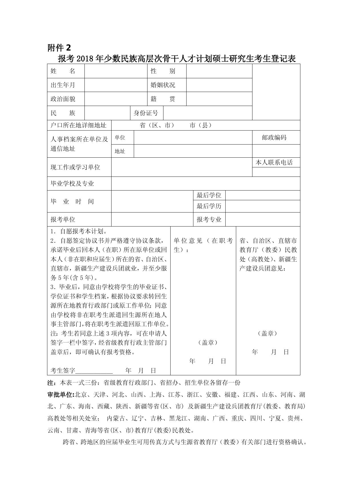 报考2018年少数民族高层次骨干人才计划硕士研究生考生登记表.doc