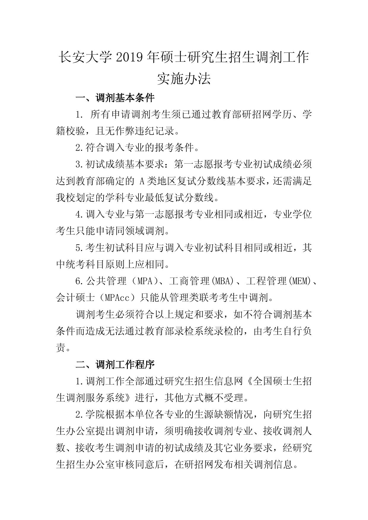 长安大学2019年硕士研究生招生调剂工作实施办法.docx