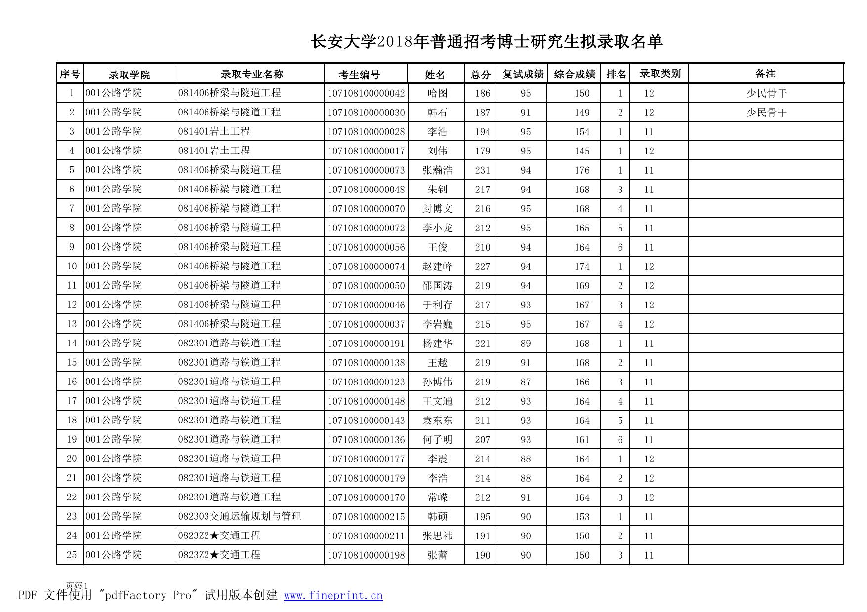 长安大学2018年普通招考博士研究生拟录取名单.pdf