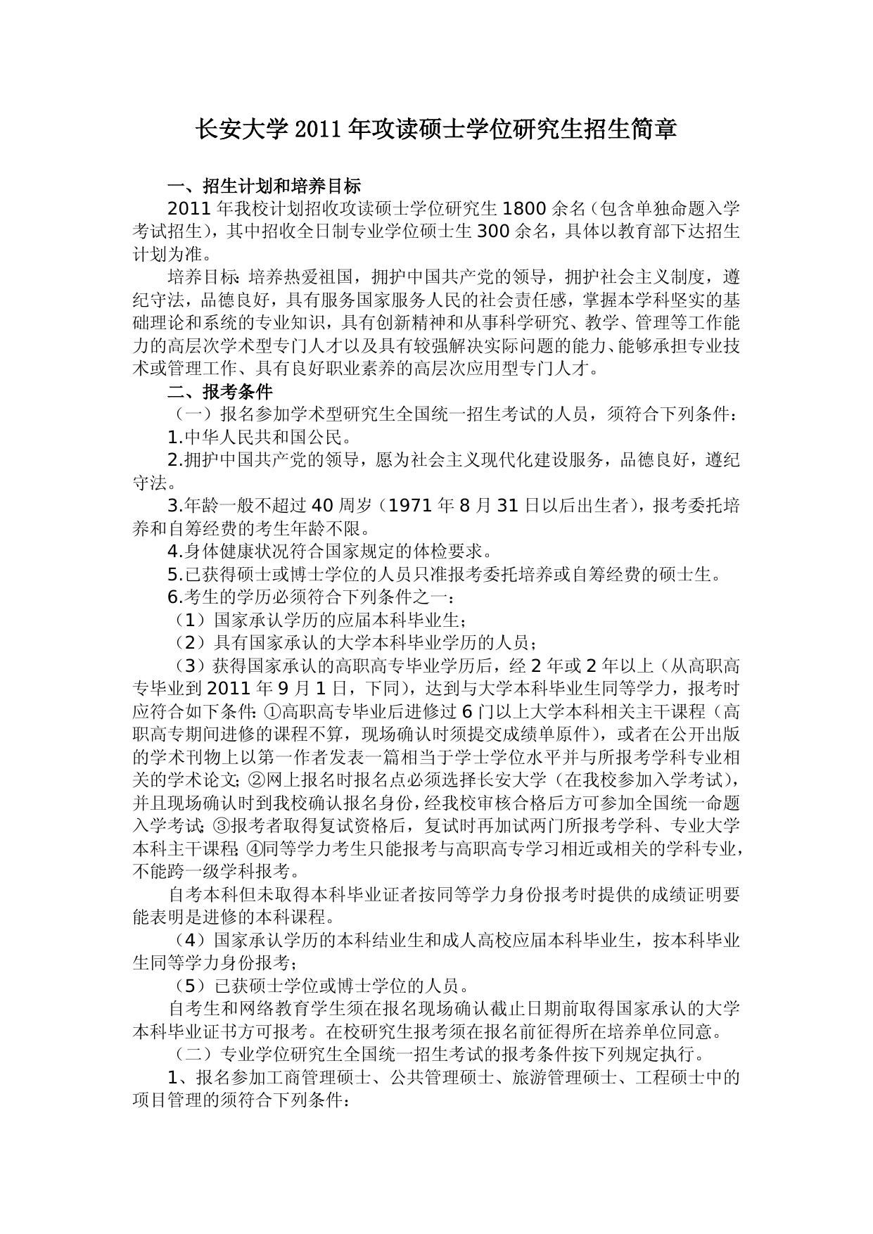 长安大学2011年攻读硕士学位研究生招生简章.doc