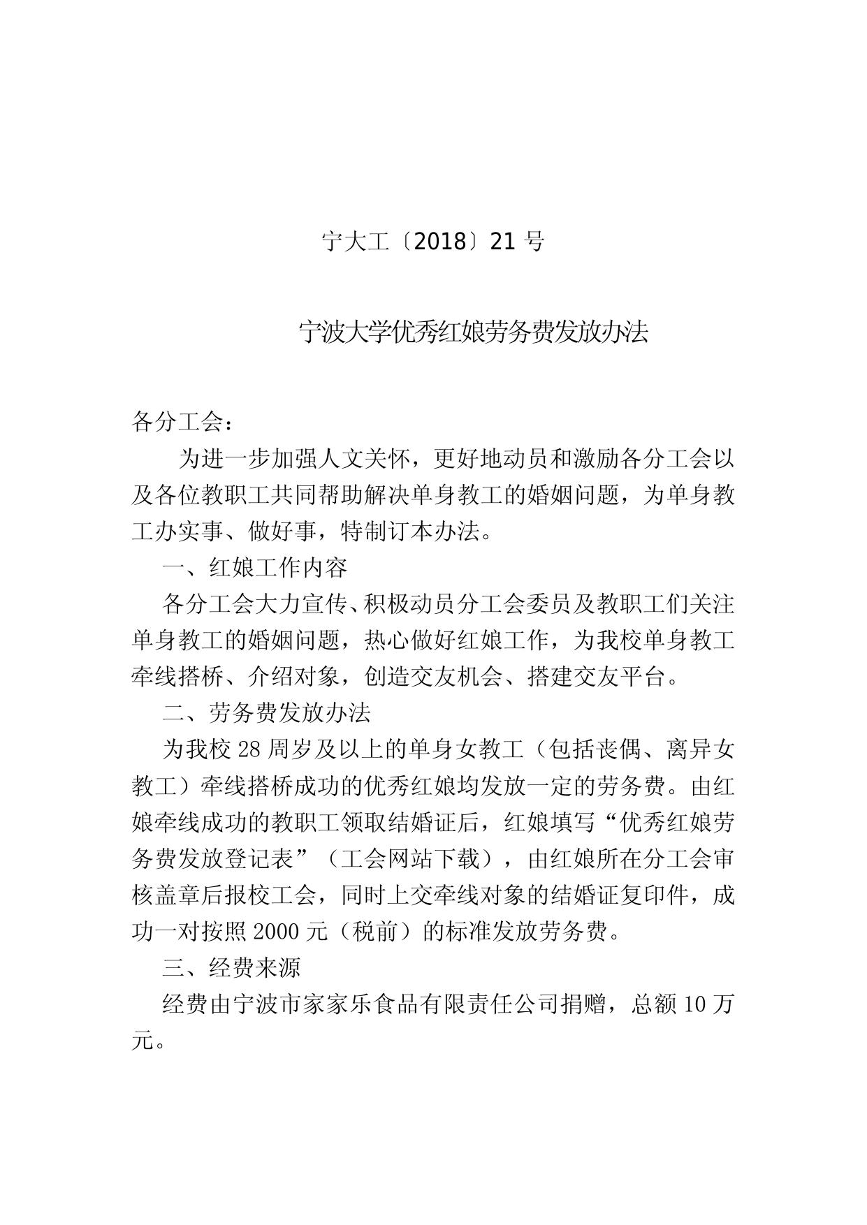 《宁波大学优秀红娘劳务费发放办法》(宁大工〔2018〕21号).doc