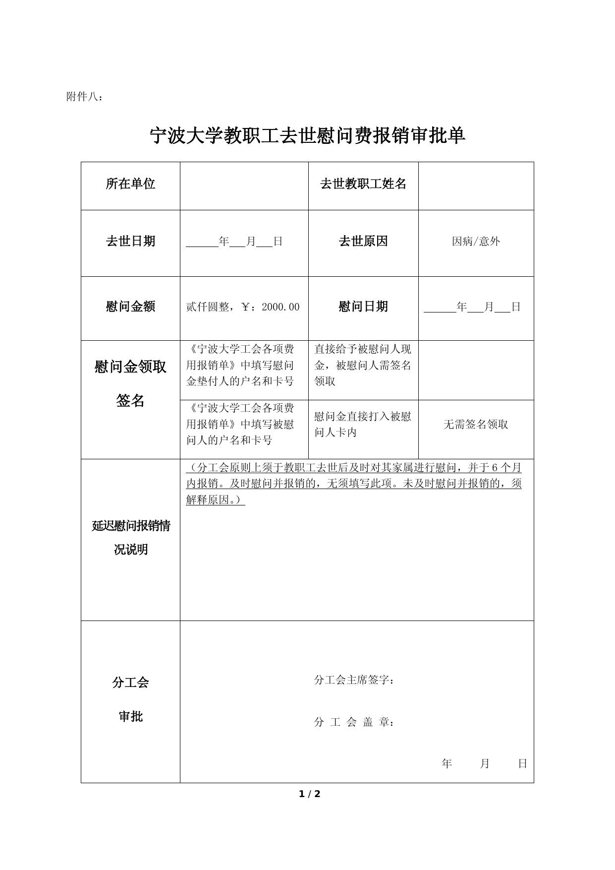附件8:《宁波大学教职工去世慰问费报销审批单》.docx