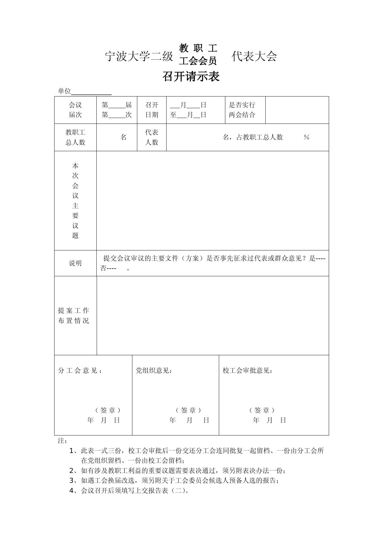 《宁波大学二级双代会召开请示表》.doc
