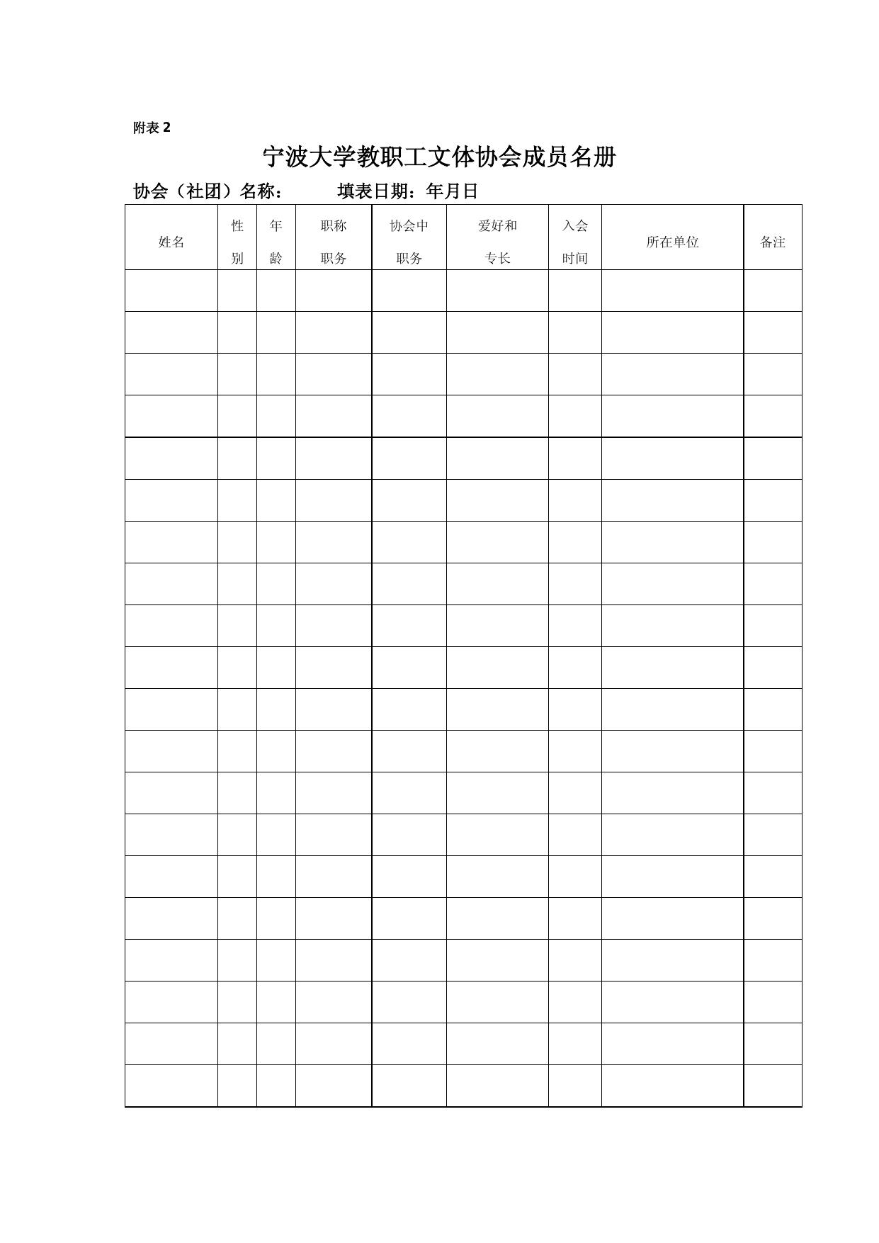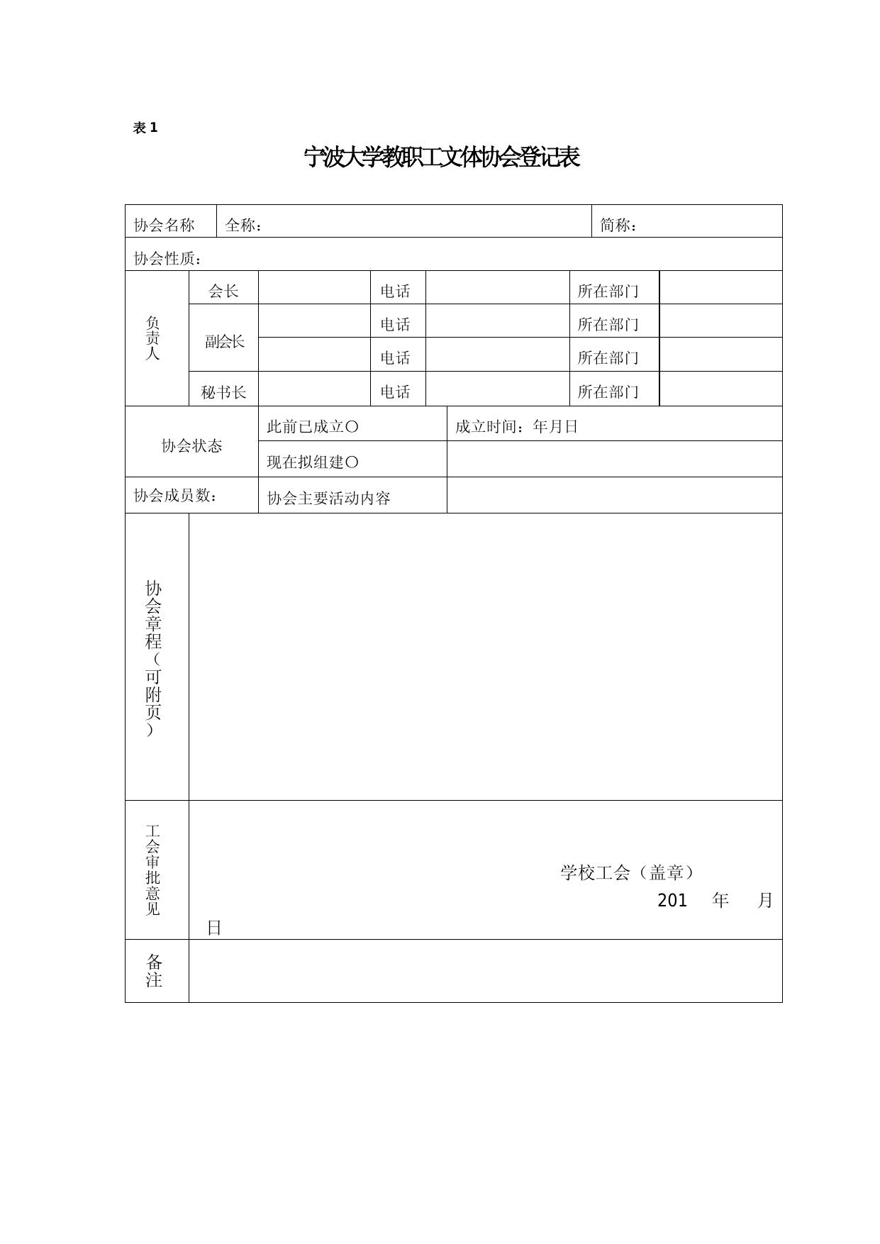 附件1:宁波大学教职工文体协会登记表.doc