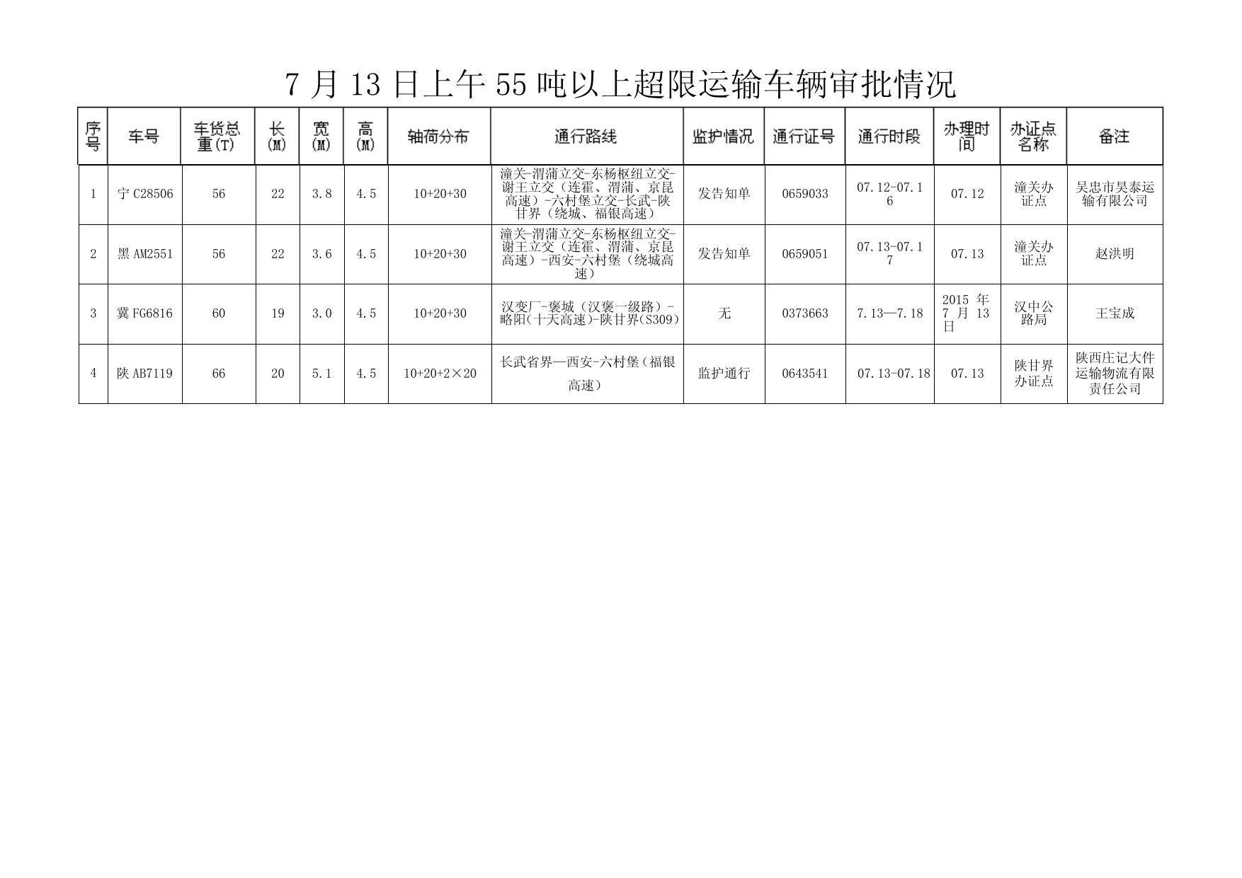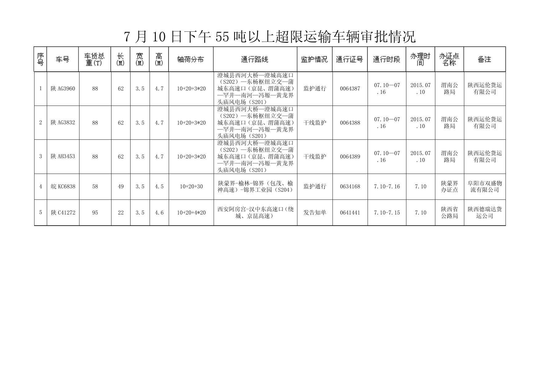 7 月 10 日下午 55 吨以上超限运输车辆审批情况