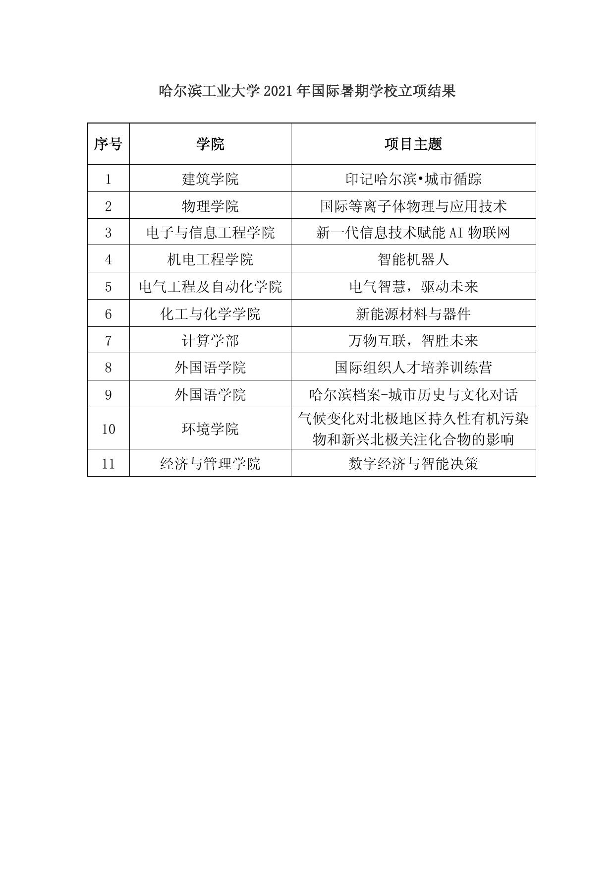 附件:哈尔滨工业大学2021年国际暑期学校立项结果.docx