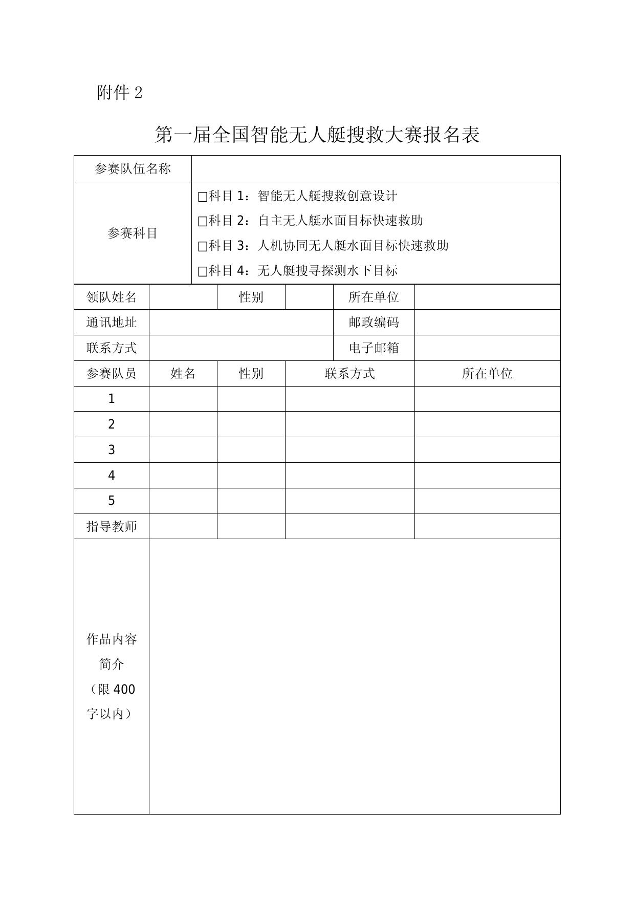 附件2:第一届全国智能无人艇搜救大赛报名表.docx