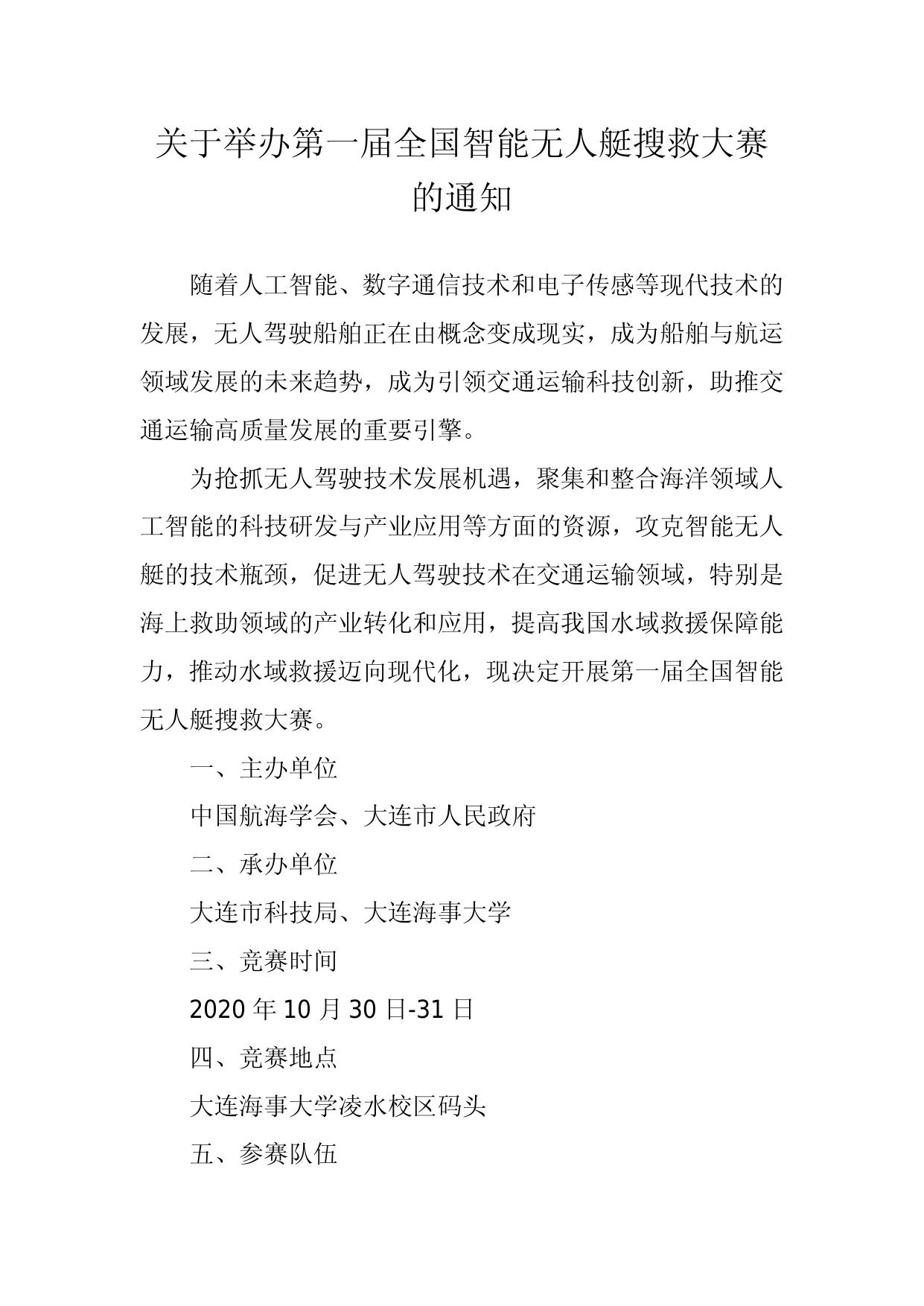 关于举办第一届全国智能无人艇搜救大赛的通知.docx