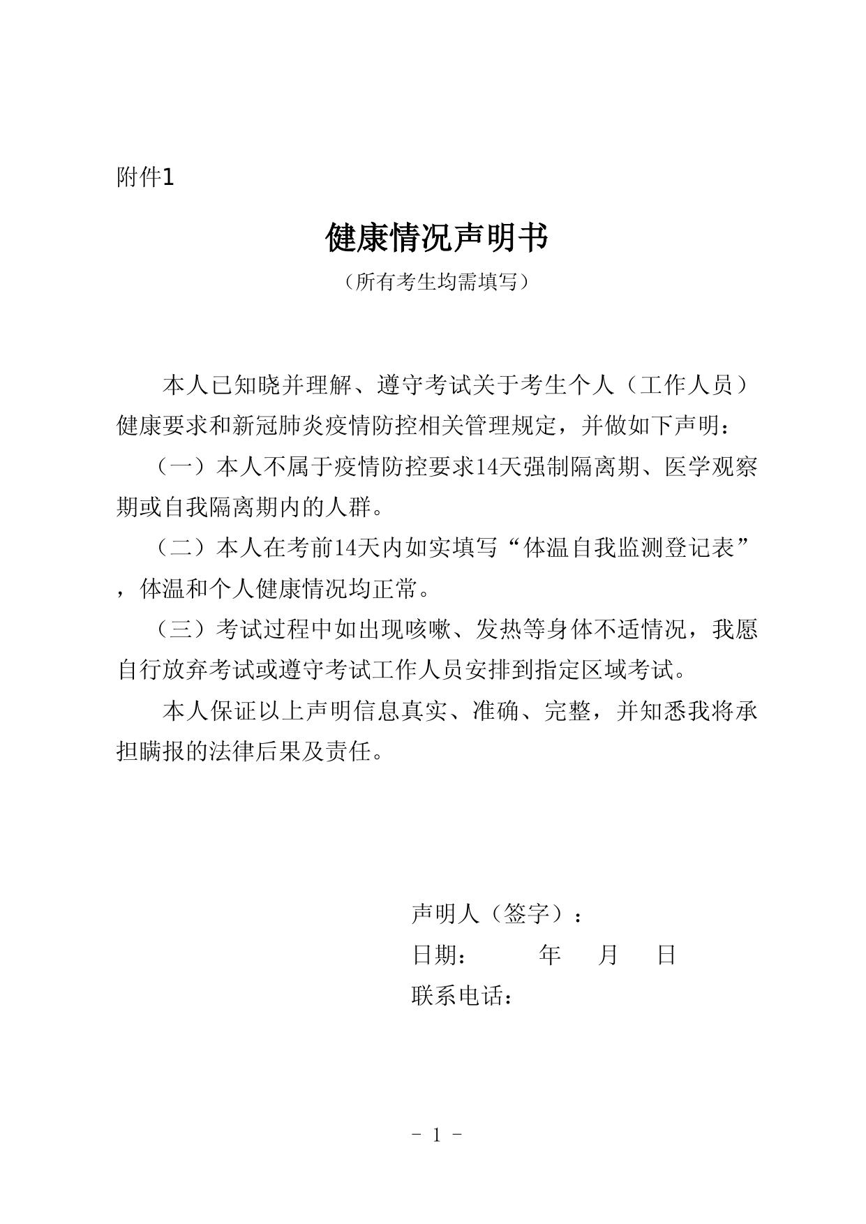 附件1-健康情况声明书.doc