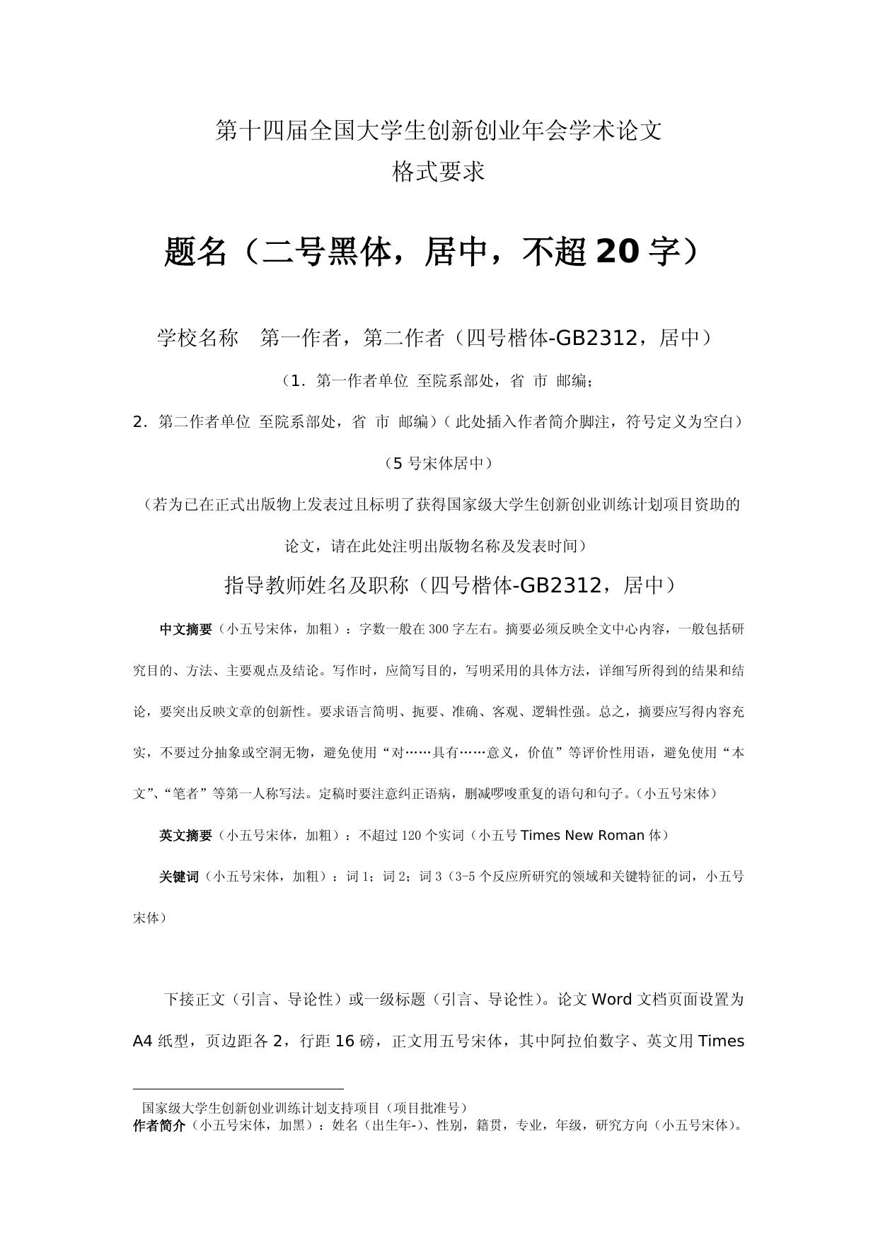 2 第十四届全国大学生创新创业年会学术论文格式要求.doc