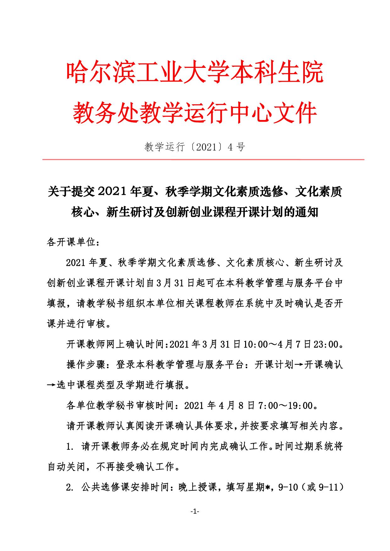 教务运行【2021】4号 关于提交2021年夏、秋季学期文化素质选修、文化素质核心、新生研讨及创新创业课程开课计划的通知.pdf